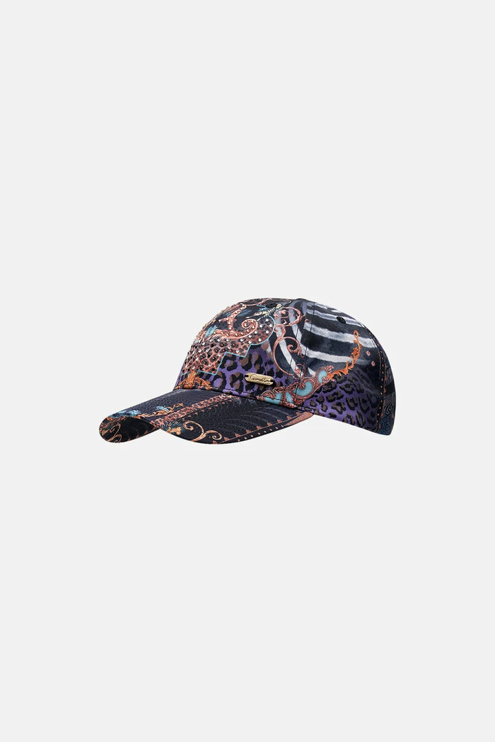 Atheleisure wear meeting the glitz of eighties stardom, the She’s Got Grace Active Cap encompasses a concoction of emerald hues and striking violet as classic leopard print and baroque details swirl alongside. Complete with hand-embellished crystals, this luxury cap plays host to a customisable band for your most comfortable fit, a gold CAMILLA namesake and renowned adornments.
