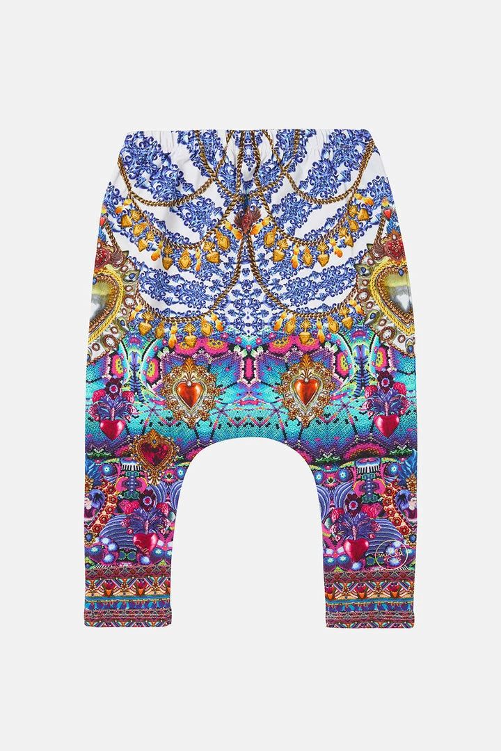 Your little love’s everyday essentials dipped in neon majesty, the Lucky Charms Babies Drop Crotch blends a vivid mosaic spotted with fuchsia moments, seas of aquamarine, golden amulets and the face of Frida into utter matrimony. Crafted from a soft cotton blend, these luxury kid’s pants feature a relaxed silhouette, a stretchy fabrication and an elasticated waistline for their most perfect fit.