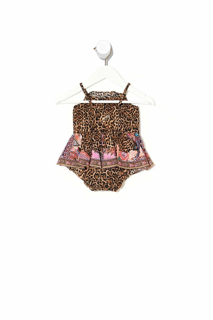 A little retro style that goes a long way, the Mayfair Mary Babies Jumpdress is stylish and practical. This breathable dress comes with built in bloomers and is covered in a rich leopard print with bright paisleys and florals. A summer staple that’s as great for vacation as it is for parties.