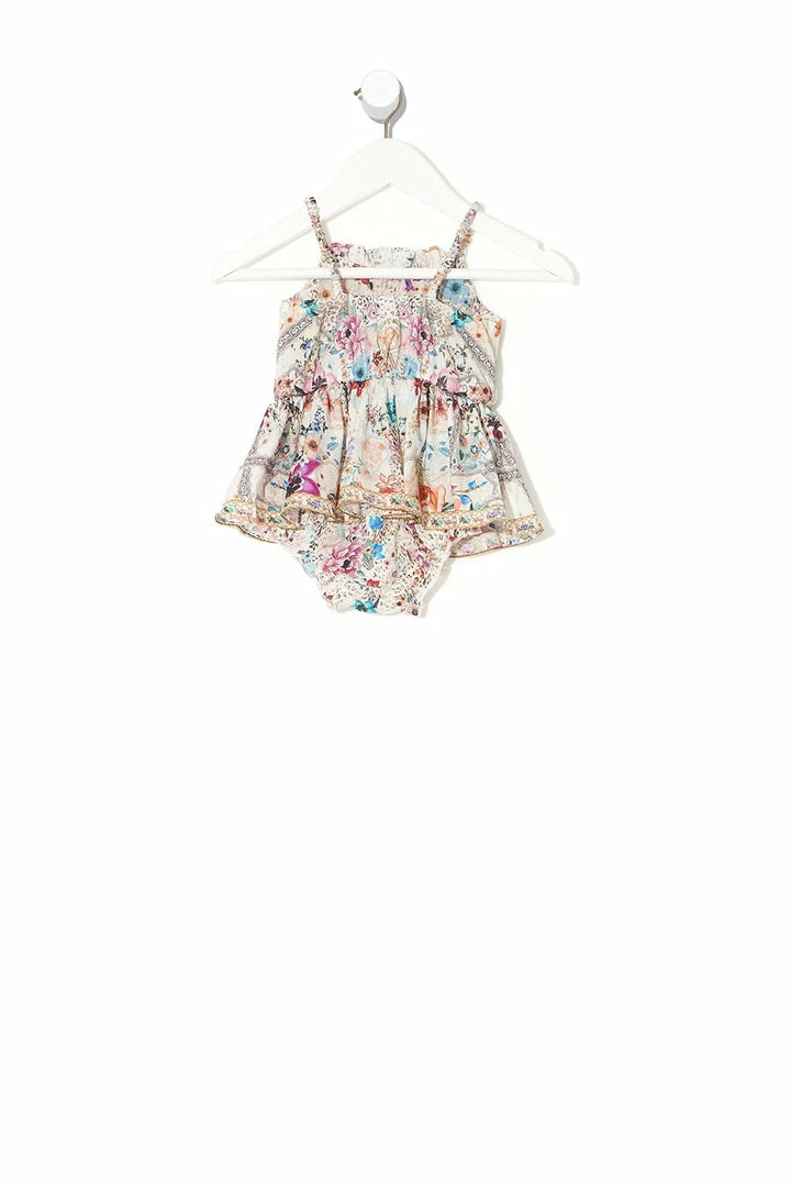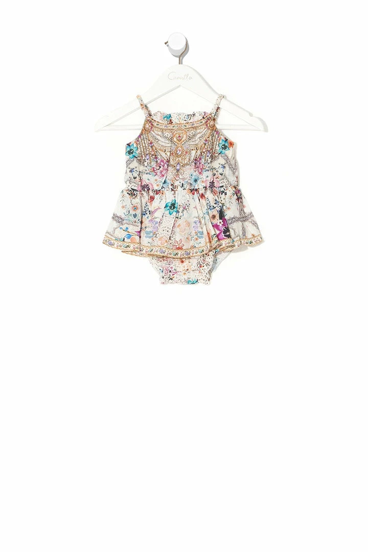 A dress fit for a little style icon, the Sew In Love Babies Jumpdress is covered in blooms inspired by English gardens. This little white summer dress has a full skirt, elasticated thin straps and soft bloomers with leg line frills. Summer parties sorted.