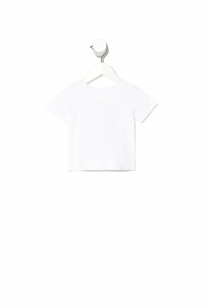 A vision of punk perfection, the London Calling Babies Short Sleeve Tee is a breathable cotton jersey top printed with a cute homage to a rock rebellion. Safety pin and skull motifs give a fun little nod to fashion’s original symbol of defiance whilst a statement of love keeps things quintessentially CAMILLA. Expertly crafted from stretch cotton, this t-shirt is finished with a round neckline, short sleeves and practical press stud opening at the neck. The versatile white base lends itself to multiple pairings but we particularly love this look back with the adorable London Calling Babies Tutu Skirt.