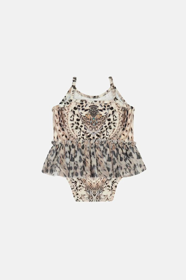 A wild inspiration for your little love, the Snow Whispers Babies Tutu Onesie is enveloped in a soft ivory leopard print defined with shades of midnight and swirls of mocha. Crafted from a soft cotton blend, this luxury baby onesie sports a decadent double layer frill skirt, press stud fastening, a scooped neckline and customisable straps for her most perfect fit.