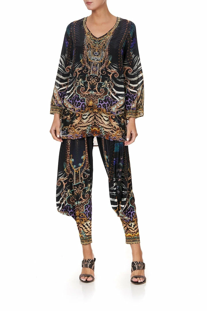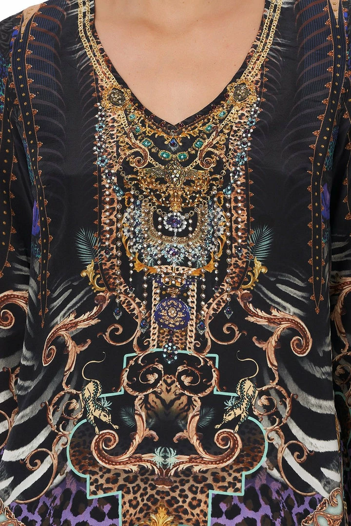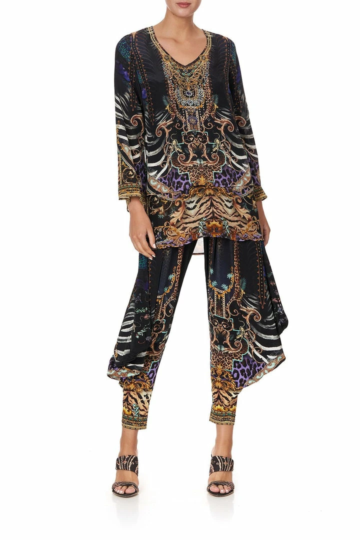 Crafted with an ethereal printed silk, this floaty top features a chic high-low hem with splits, wide sleeves, flattering v-neckline and is finished with hand-applied CAMILLA embellishments. Designed to wear with the She’s Got Grace Jersey Drape Pant for a head to toe printed vibe.