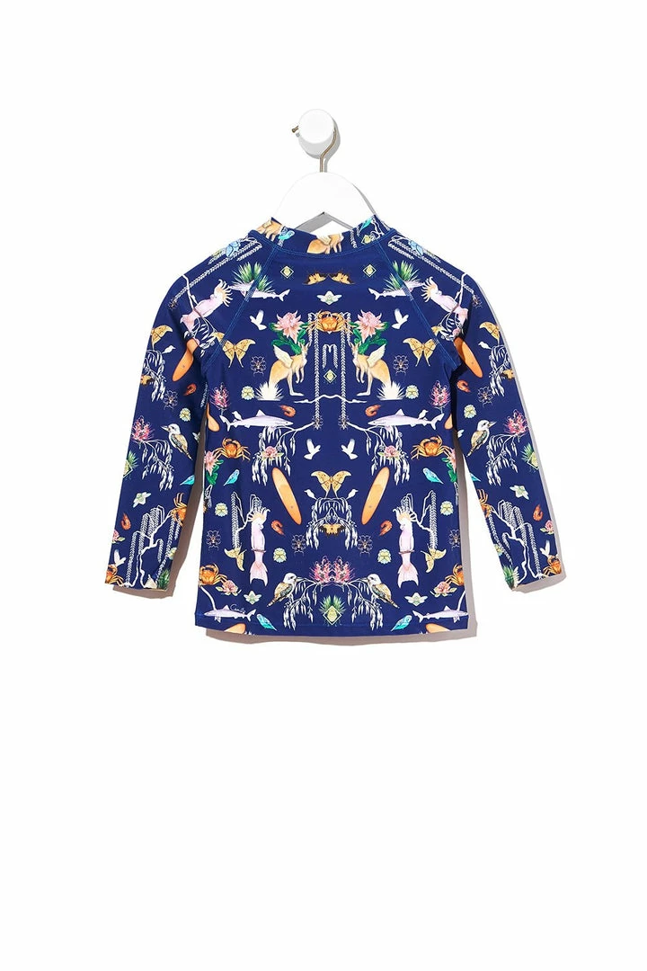 Embracing a playfully trippy take on Australian icons, the Desert Dance Boys Rashie is crafted from a soft swim ready fabric allowing for free movement in the water. Perfect for surf classes, long sleeves and high round neck lend to protection against the rays.