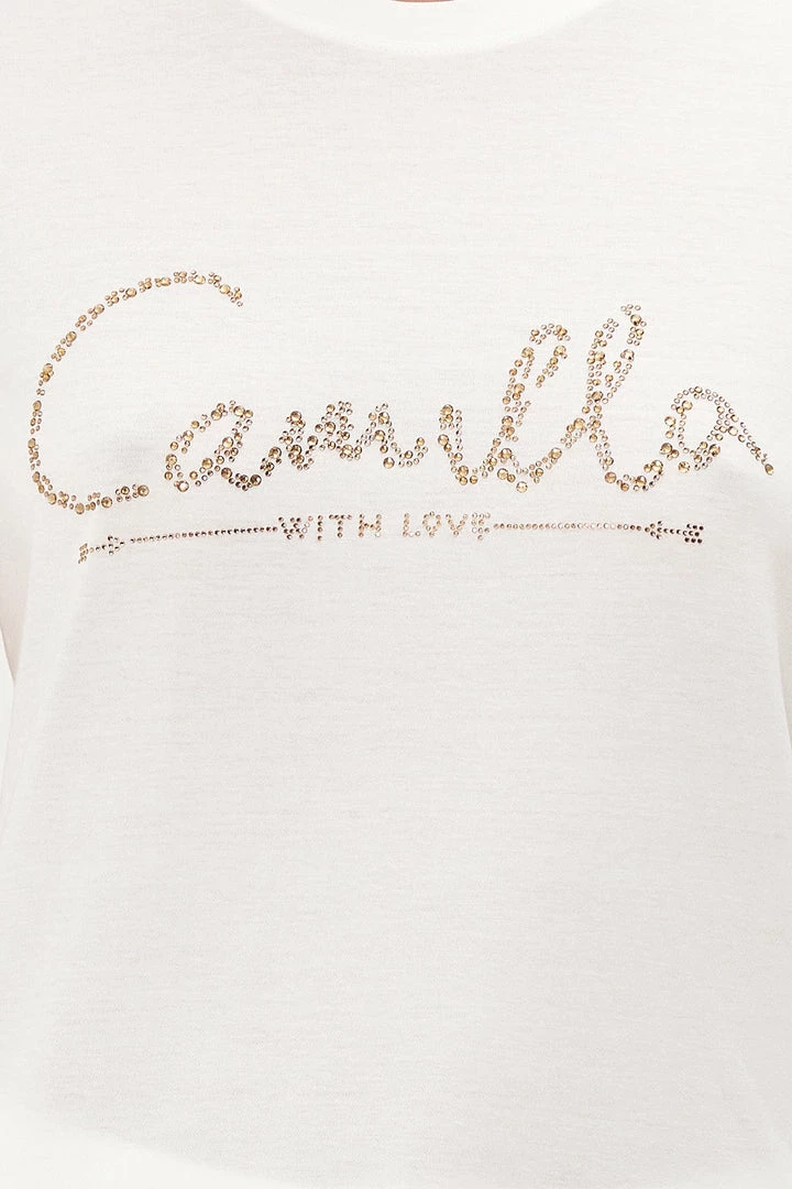 Adding a moment of extravagance to the everyday, the Logo Capsule Slim Fit Round Neck T-Shirt revives the classic tee in a crisp white hue and our CAMILLA namesake in shades of gold. Crafted from breathable cotton and finished with hand-embellished crystals, this statement tee features a classic round neckline, cropped sleeves, a relaxed slim-fit silhouette and breathability.