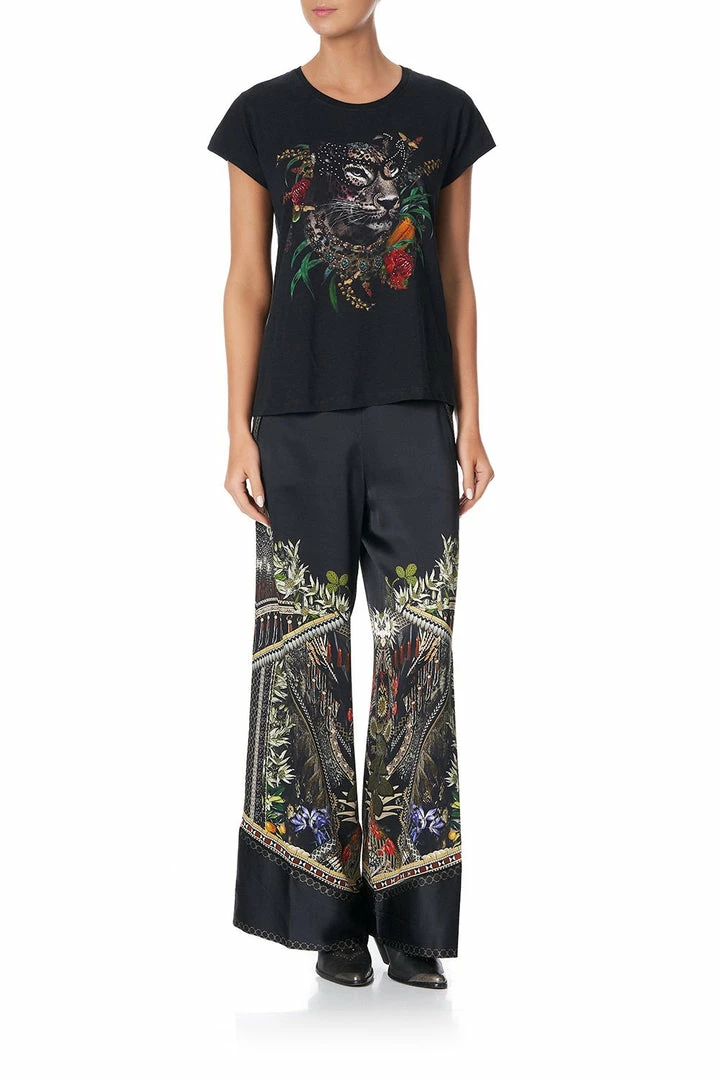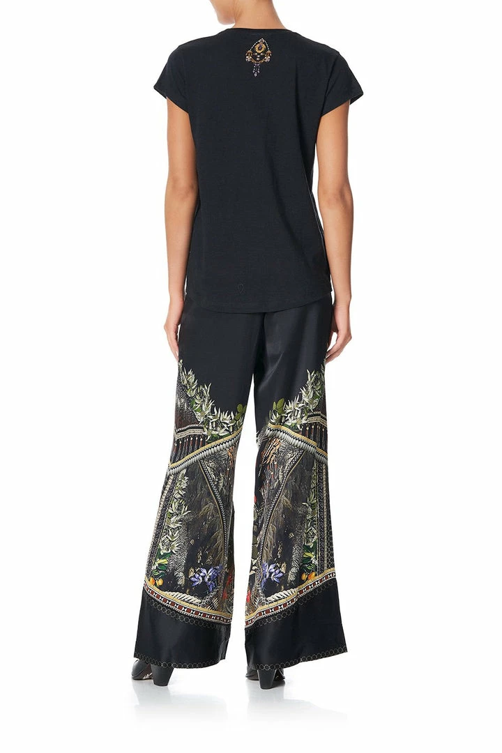 Embracing the beauty of the bush blooms that flourish across the Australian mountaintops, the Botanical Chronicles Curved Hem Fitted Tee embraces dark hues and fine detail. This cotton tee is flatteringly fitted and features a rib neck band, all-over print, as well as crystal embroidery as detail.