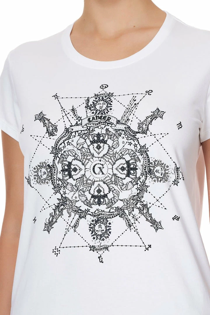 A statement tee for water angels born between June 21st to July 22nd, the Cancer Curved Hem Tee is an astrology wonder. Crafted in a soft 100% cotton in a fitted shape, this star sign tee features a hand drawn Cancer placement print and ribbed neckline and is finished with hand applied crystal embellishments. An essential tee for the loyal, protective, intuitive, and caring nurturers of the zodiac.