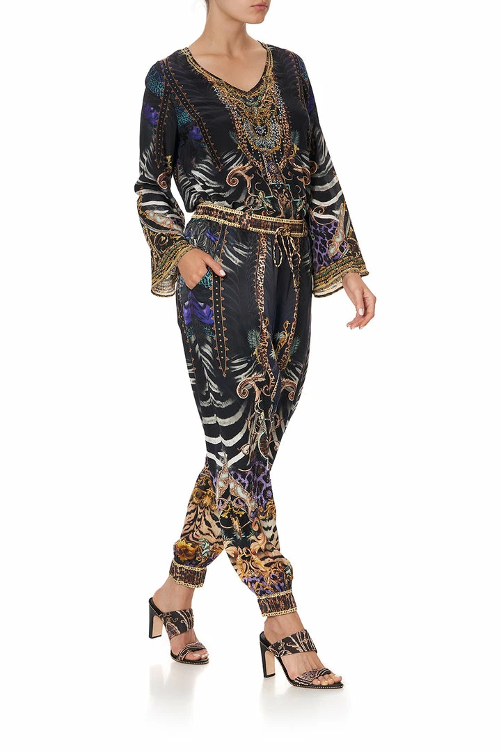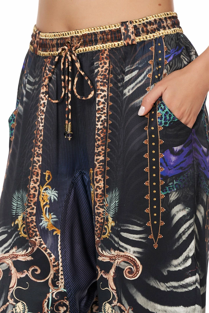 A statement pant with elegant and mesmerising hand painted gold accents, the She’s Got Grace Drop Crotch Track Pant is a tribute to Grace Jones her ability to unapologetically carve out her own unique style that raised the bar of pop culture. These pants feature an elasticated waistband and cuff, a drop crotch fit with a top stitching detail and a back patch pocket. These can be perfectly paired back with the She’s Got Grace Lace Up Front Cami for a chic casual weekend.
