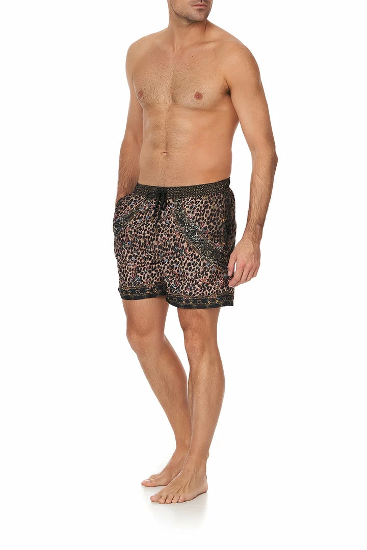 Transform the ordinary with the Abingdon Palace Elastic Waist Boardshort with decadent leopard print rosettes and filigree detailing, inspired by the iconic Biba Boutique. Expertly crafted from a sun safe fabric these printed men’s swim shorts are styled with side pockets, Velcro back pocket and contrast drawstring waist. A bold swim short for the print-loving gentleman, pair with a classic white tee for a fun beach look.
