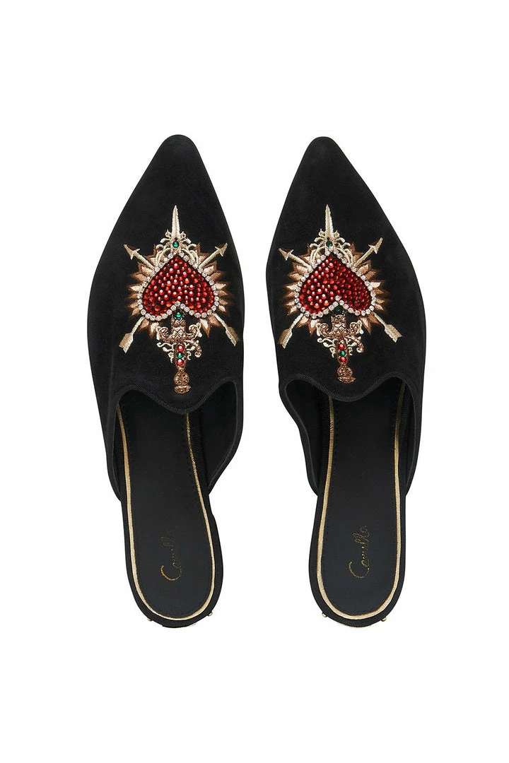 A lavish pair of slides filled with fairytale magic, the Mirror Mirror Embellished Slippers are unapologetically opulent. Crafted in a buttery soft suede upper, these embellished statement slippers feature artisan bead work and a CAMILLA logo plate. Pair back with soft suiting pieces from current season.