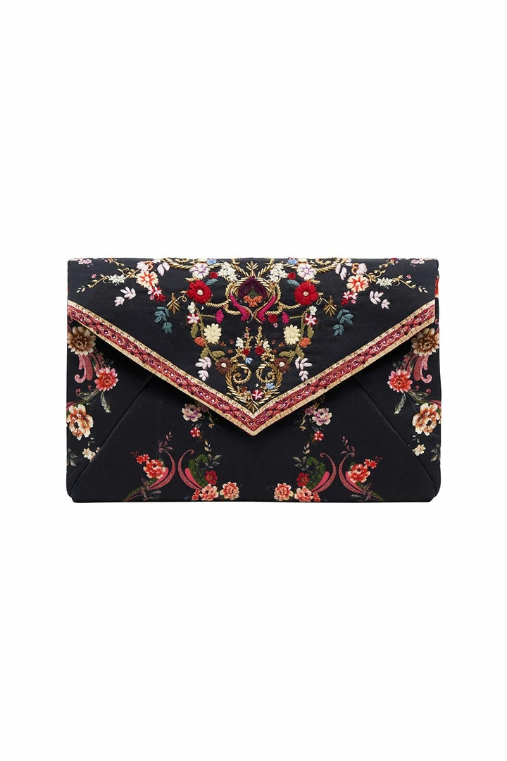 A lavish embellished purse, the A Girl Like You Envelope Clutch is hypnotised by an enigmatic beauty that charms like no other. This statement clutch features quilted lining, an internal zip pocket for precious treasures, a magnetic snap fastening and opulent embroidery by our CAMILLA artisans. A piece to love forever and ever, wear with matching CAMILLA A Girl Like You prints.