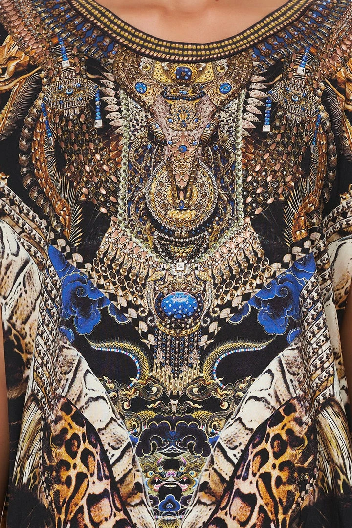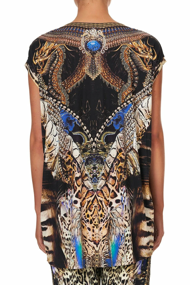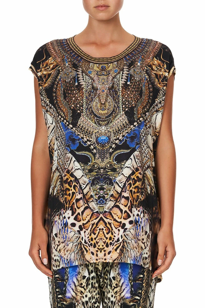 Adorned with a celebrated print from our 2017 Chinese Whispers collection, the Dragon Lady Extended Sleeve Tee pays tribute to the supreme beings who bring success, protection and good fortune. Expertly crafted from a super soft jersey, this loungewear t-shirt is styled with a round neck and extended sleeves. The bold all-over print is accented with hand-placed CAMILLA crystals, a fitting tribute to our celestial muse. Style back with jeans or, for a truly relaxed casual aesthetic, wear back with the matching Dragon Lady Jersey Drop Crotch Pant.