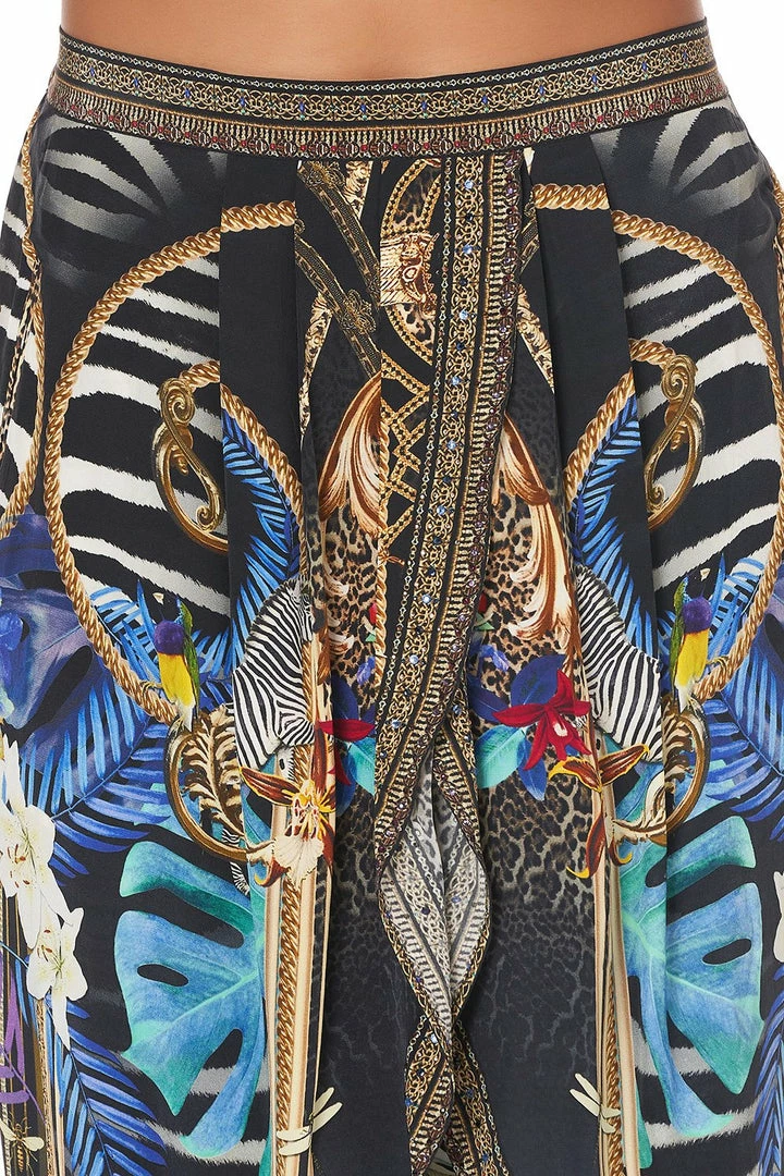 Inspired by the iconic Biba Boutique, the Rainbow Room Gathered Wrap Front Trouser blends the exotic splendour of the lush roof garden with the neon hues of the restaurant’s famous lighting. Designed in luscious silk and garnished with sparkling crystals, these luxurious pants are cut in a relaxed fit with gathered ruching around the calf, and an elasticated waist for a dynamic and comfortable silhouette. Wear with this season’s silk tank tops and a pair of slides for an easy daytime look, or add sleek heels to elevate your aesthetic into evening.