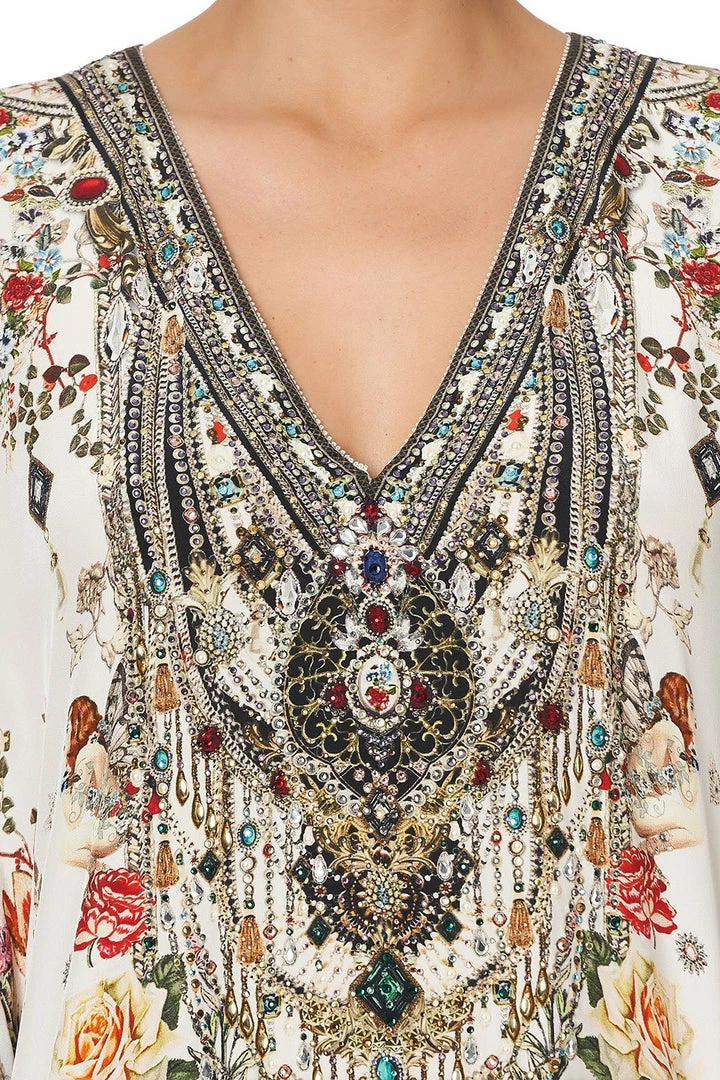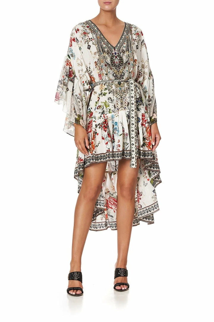 Dripping in timelessness, the High Low Ruffle Dress can’t help but turn heads in a silky elixir of ivory, blue and red. Inspired by one of the greatest poets of all time, this flirty frock features a dramatic multi-length hem and wide, ruffled sleeves — crafted to make an entrance. A belt and overall relaxed style allow you to sculpt the silhouette to your occasion, while drop-waist detailing offers balance to those with shorter torsos and longer legs.
