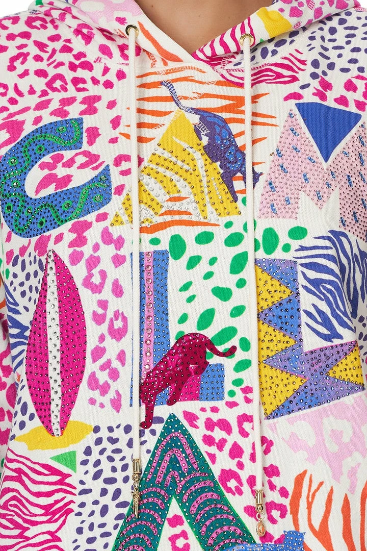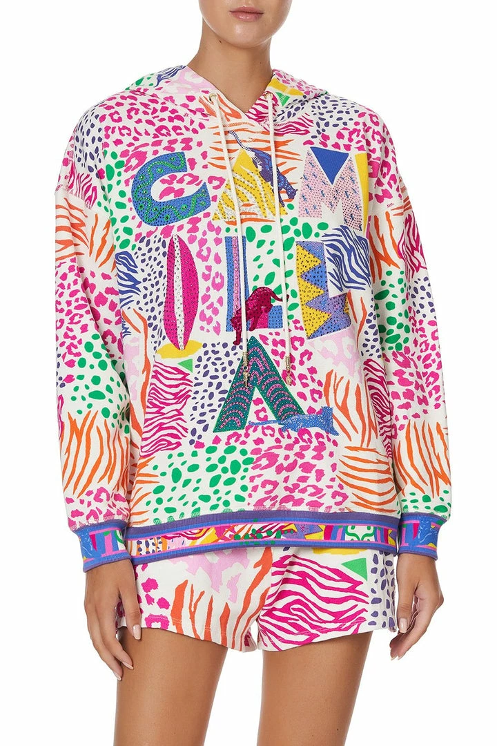 Snuggle up in luxury loungewear with our Bonza Babe Hoody With Pockets. Crafted from soft breathable cotton, we pay homage to our inner wild child and the eccentric spirits who roam our Mother Earth. A blend of dainty pinks and ivory swirl amidst our renowned CAMILLA namesake in pops of blues, purples and yellows. This luxury hoodie plays host to a relaxed oversized fit, ribbed cuffs and hemline, an adjustable drawstring hood and pockets. Complete the set with our matching Terry Short With Contrast Stripe.