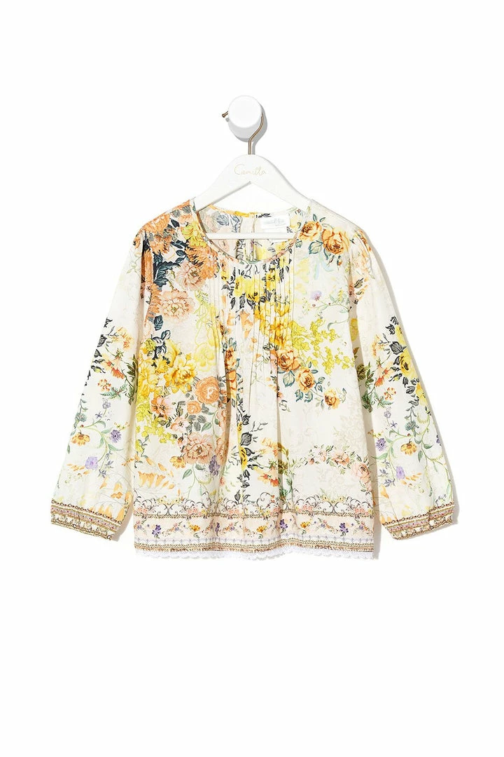 An unapologetically cute peasant style top, the In The Hills Of Tuscany Infants Blouse With Pintucking is simply divine. This floaty printed cotton top inspired by the Queen of the screen through fierce leopard print and flourishing feminine blooms. It features dazzling crystal embellishment, delicate pintuck detail on the front, long comfortable sleeves and a soft, stretch fabric. Pair with shorts for an outfit perfect for summer parties in the park.