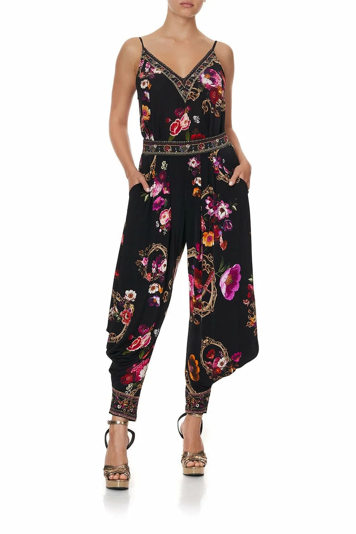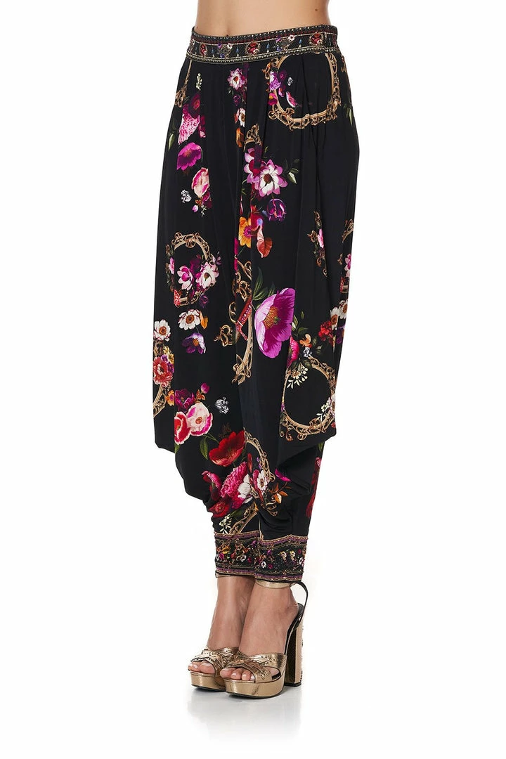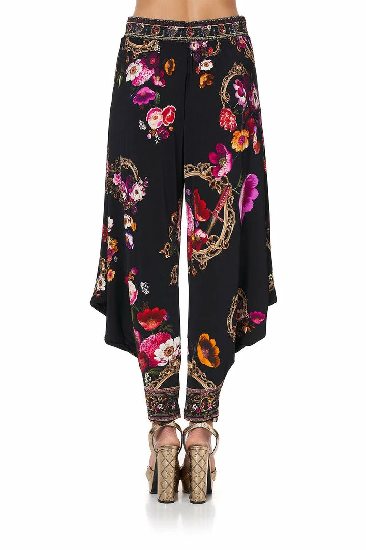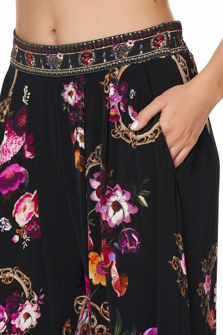 A statement pant designed in relaxed form; the Mirror Mirror House Jersey Drape Pant with Pocket is opulent with accents of fairy tale magic. Crafted in a slinky printed jersey with romantic black and rose print rich with a mesmerising study of the romantic French chronicles of Cinderella, these loose fit trousers feature a comfortable elasticated waist band, practical side pockets and are finished with a glittering array of CAMILLA crystals. Wear with matching Long Suede Shearling Coat for a vibrant winter look.