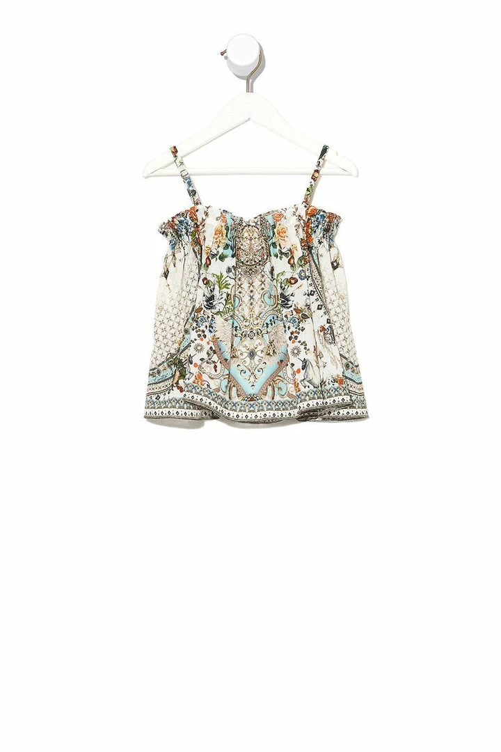 A new edition to the CAMILLA Kids Collection, the Kids Cami 4-10 is a cotton camisole made for the dreamers. Inspired by the works of Shakespeare, it features a soft flared hem, elasticated neckline and personalisable straps for the most comfortable fit. An elixir of botanicals on a backdrop of ivory pave the way for subtle crystals sprinkled throughout.