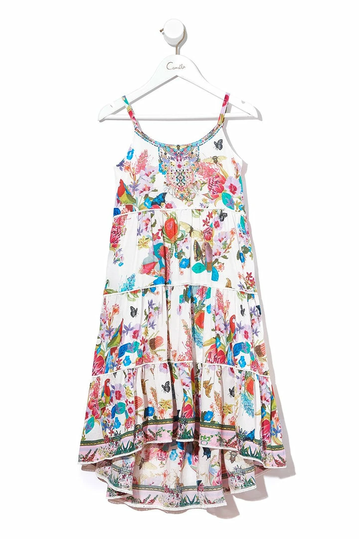 In a heartfelt hand-painted tribute to the Australian bush, the Homeward Found High Low Hem Dress is a fun summer party piece. This floaty dress features a hand-painted print across a 3-tiered skirt crafted from soft cotton, invisible side zip, adjustable straps and is finished with resin crystal embellishments. Perfect for making summer memories in.