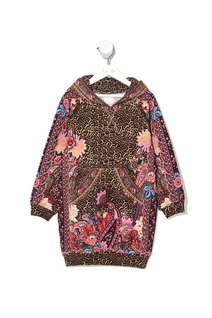 A casual dress with flair, the Mayfair Mary Kids Hoodie Dress is the ultimate play date outfit. Long sleeved with a hood, it’s nice a warm for cooler days while an all over leopard print with floral and paisley details make it roar. Team with her best runners for an everyday look with some serious sass.