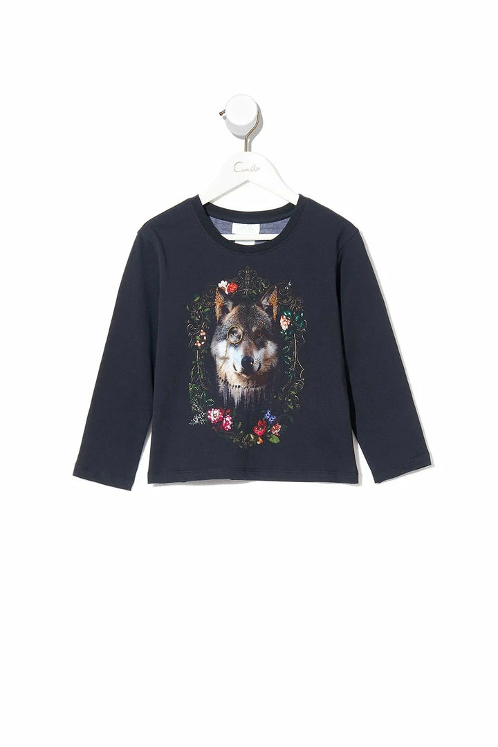 A fairytale dream that glistens and gleams, the Nomadic Nymph Kids Long Sleeve Top adds a little bit of glamour to your princesses style. This long sleeve winter warmer has a semi fitted silhouette, a comfy dropped shoulders, a round neckline and hand placed CAMILLA crystal embellishments. Pair with the Nomadic Nymph Kids Bomber Jacket and a pair of skinny jeans for a fun casual look.