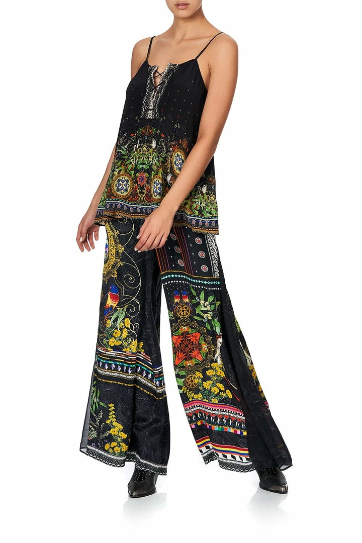 With patchwork print inspired by the glory days of ‘80s Australia, the Blackheath Betty Lace Up Front Cami exudes playful charm. This silk top features flattering shoestring straps, flared body, digitally printed silk, as well as hand-placed crystals as detail.