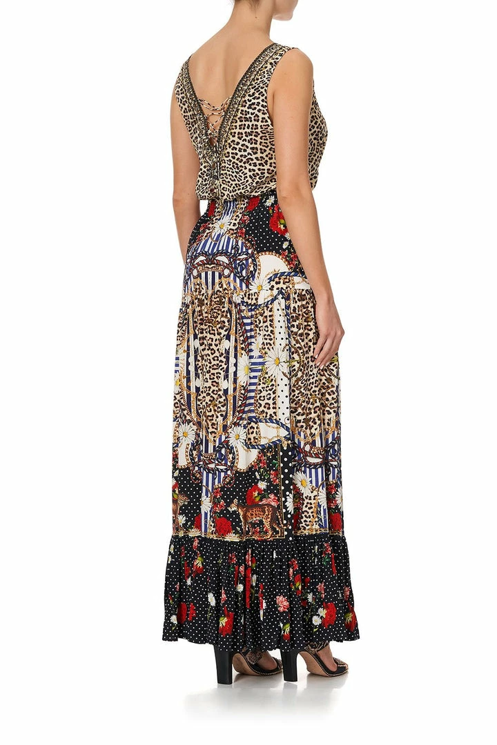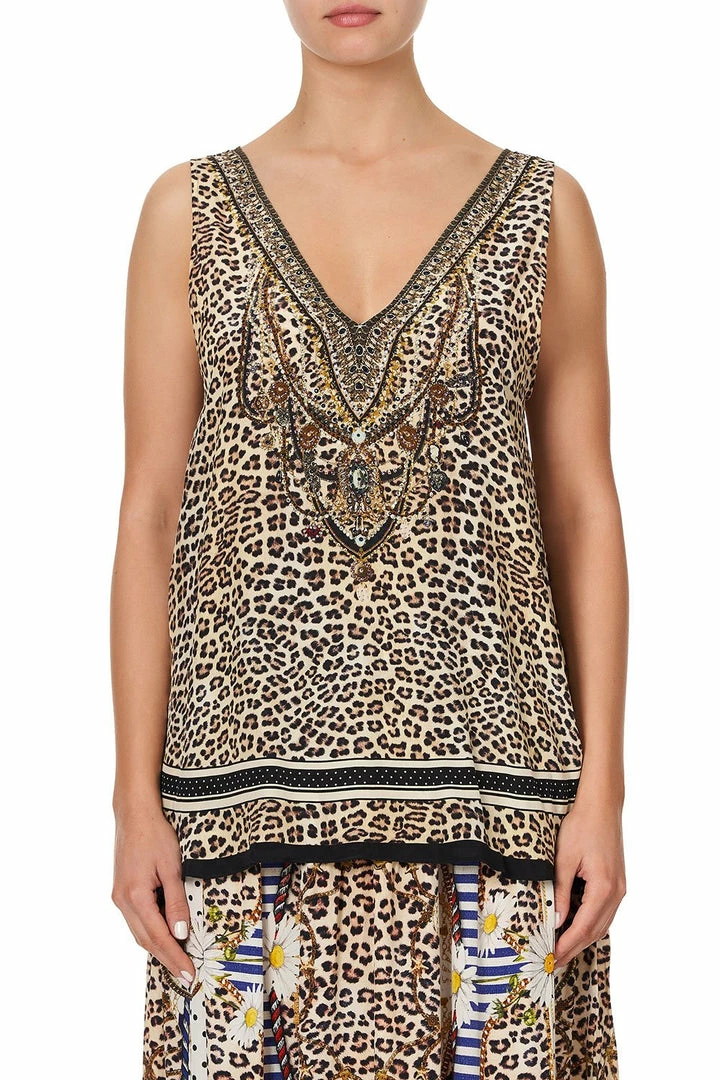 A simply mesmerising statement singlet enriched with scenes of wild leopard print, the Sex Kitten Lace Up Top is divinely lush. Crafted in a heavenly buttery silk showcasing a print mused by Brigitte . This boho blouse is cut with an A-line silhouette and v neck, and features lace up detail on front and back. A piece to love forever and ever, we love to pair this piece back with the matching Sex Kitten High Waisted Flare Short.
