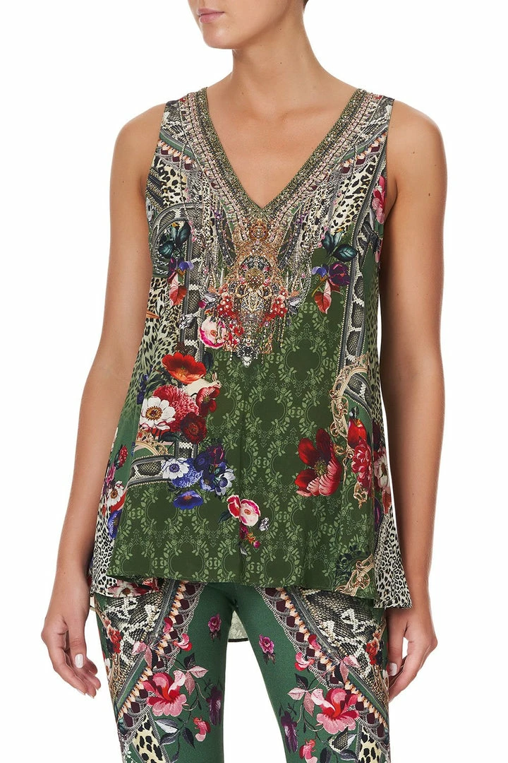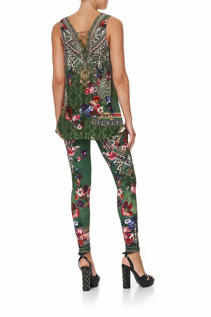 A simply mesmerising statement blouse enriched with scenes of wild animals and blooming roses, the Tales of Time Lace Up Top is divinely lush. Crafted in a heavenly floaty khaki silk showcasing a print of power and peace inspired by Indian emperor Ashoka, this boho blouse is cut with an a-line silhouette and v neck, and features lace up detail on front and back. A piece to love forever and ever, we love to pair this piece back with the matching Tales of Time Leggings.
