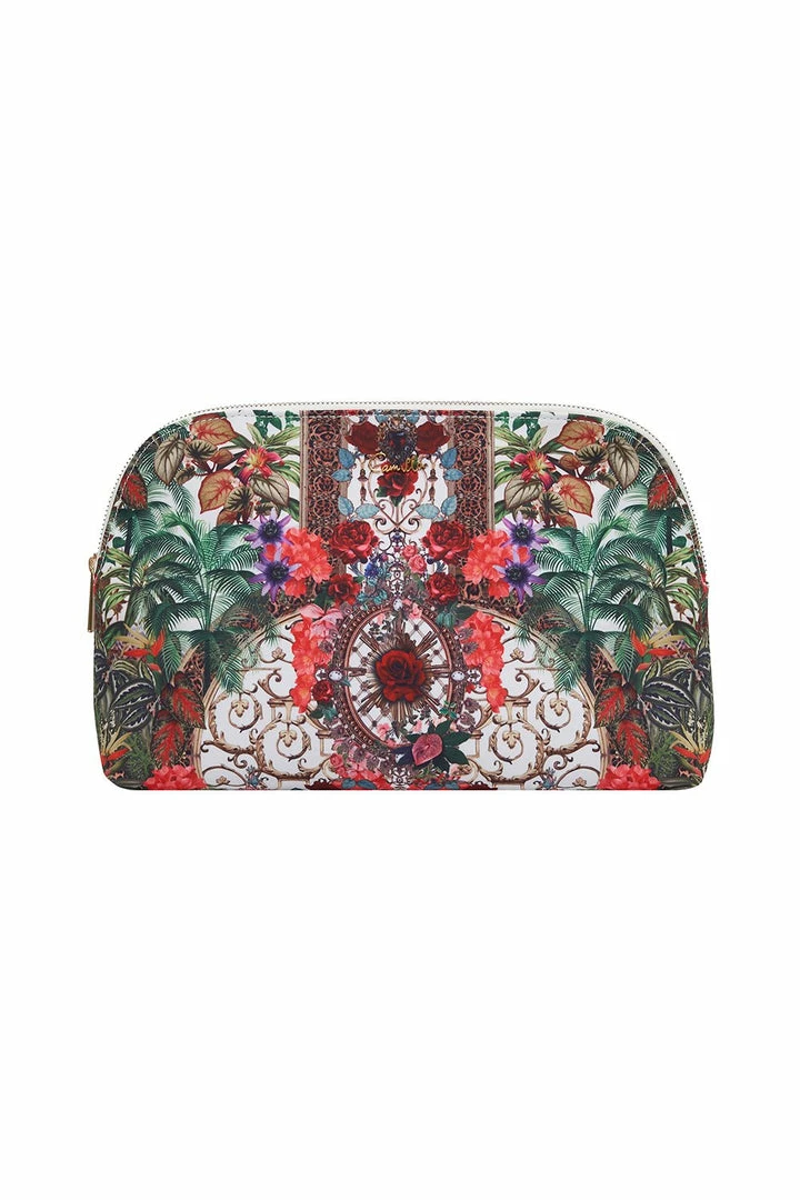A generous wash-bag printed with a romantic scene of forbidden love, the Fair Verona Large Cosmetic Case is a canvas of feminine blooms printed on a practical waterproof fabric. This large make up bag is fastened with a zip closure decorated with a CAMILLA logo puller.
