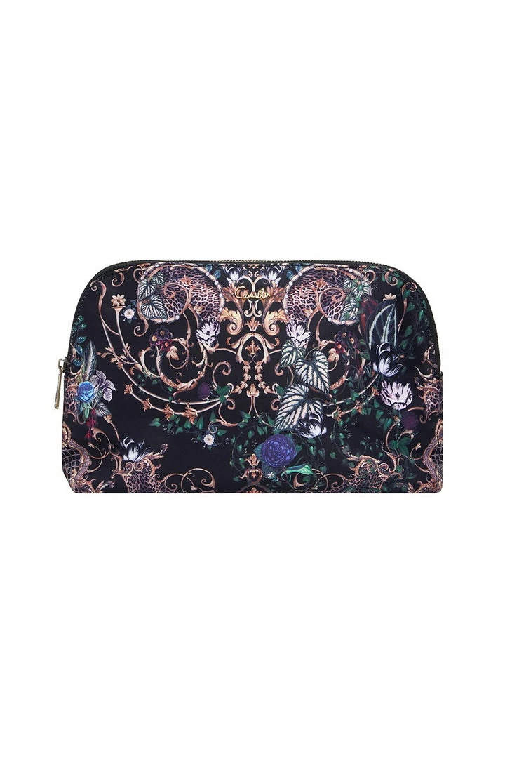A suitcase essential for the wandering heart, the Studio 54 Large Cosmetic Case is enriched with hues of gold and black accents telling the story of Grace Jones and her ability to raise the bar of pop culture with her feminine energy. Crafted from a faux leather, it features practical internal pocket storage, sumptuous all-over print, as well as contrast zipper pullers and gold CAMILLA logo.