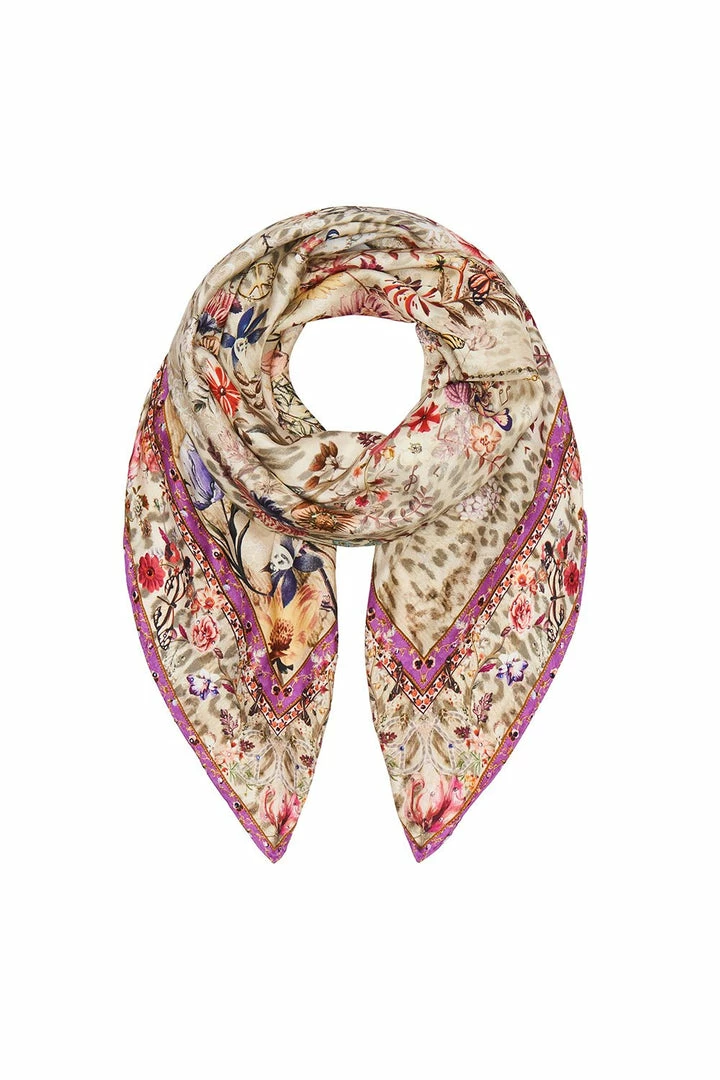 Fierce animal print peaks through dazzling flourishes of roses Drifting Dreamer Large Square Scarf Animal and floral print large square scarf Simply drape around the neck for a statement scarf or visit the CAMILLA style guide to view the many ways to style.