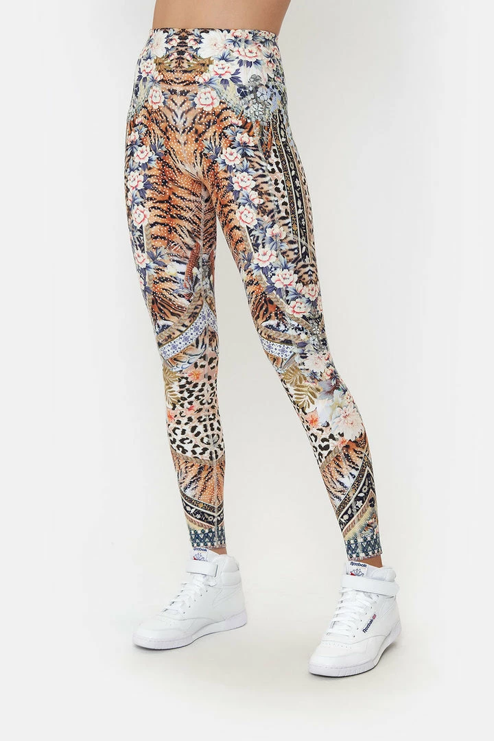 A mosaic of bouquets meeting wild majesty, the Moto Maiko Legging With Pocket is enwrapped in blush botanicals, animal print dipped in soft cocoa and ferns of olive hues. Crafted with anti-pilling technology, these luxury floral leggings feature pocket functionality, a high-rise cut to cinch the waist, a fitted silhouette, four-way stretch technology and are crease resistant.