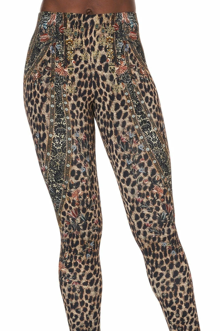 Make an entrance with the Abingdon Palace Leggings. Designed for an elegant slim line silhouette with a design of golden motifs on a wild print of leopard rosettes, influenced by the drama of the interior decoration of London’s Biba Boutique. With a decorated border hem and signature CAMILLA crystals, these fitted leggings are the perfect combination of style and comfort for an attitudinal aesthetic. Pair yours with blouses from this season’s edit for a truly statement look.