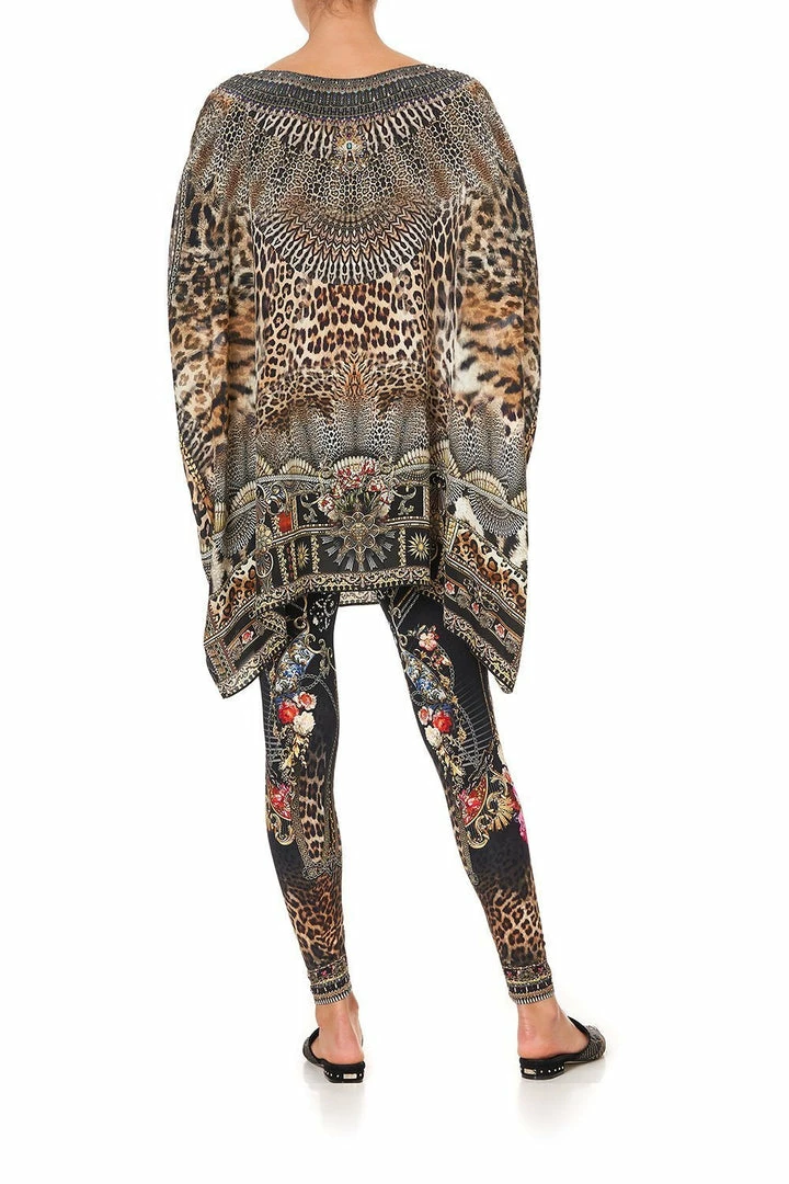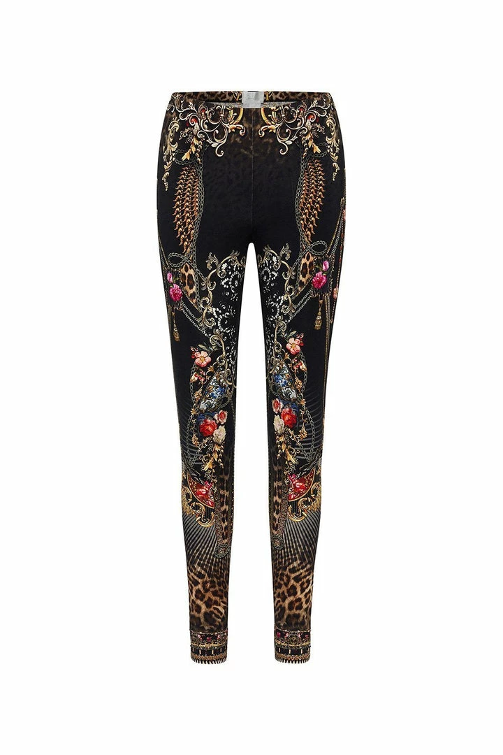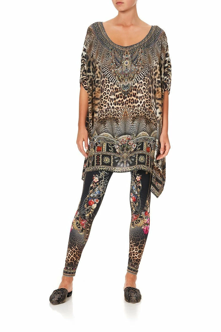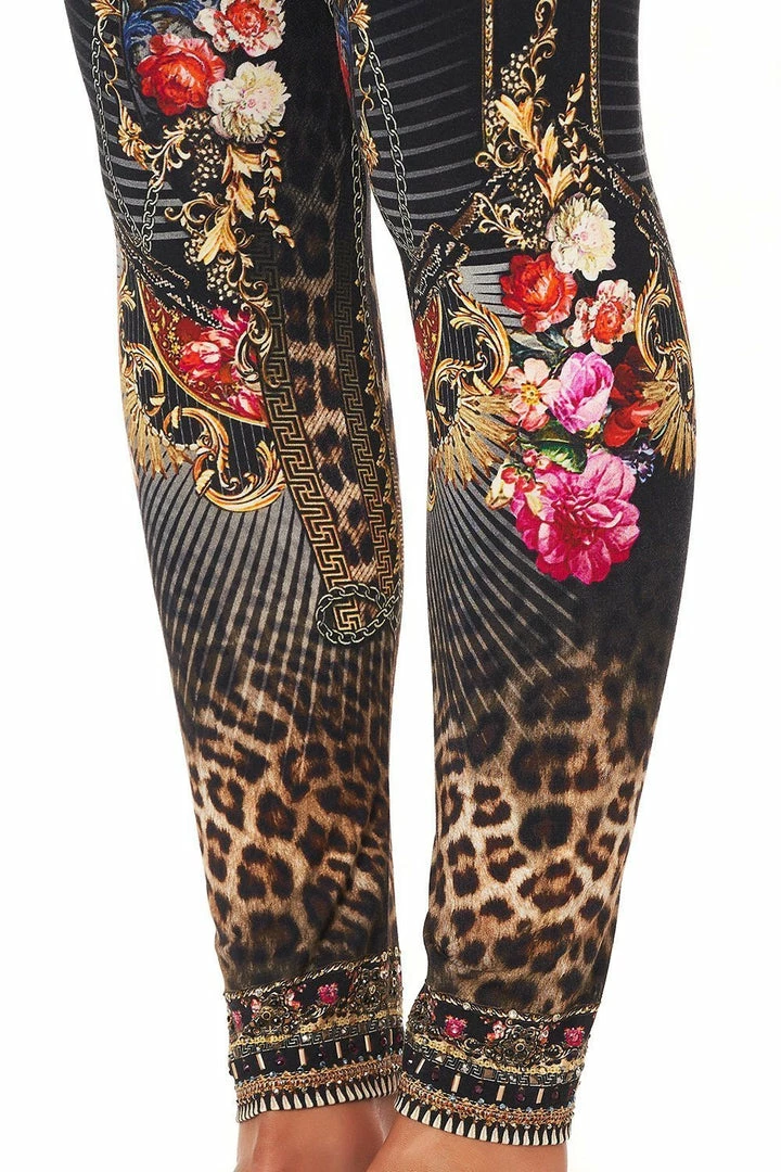 A luxe printed legging, the Gothic Goddess Leggings are all-over printed with kaleidoscopic leopard print and blooming florals in a nod to the ornate cathedrals of the Middle Ages. This statement fitted bottom is hand-embellished with CAMILLA crystals and a must have winter staple. Pair the casual pants with the Call Of The Cathedral Short Round Neck Kaftan for a luxe leopard look.