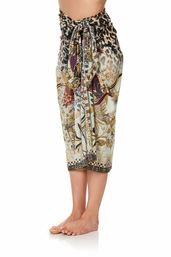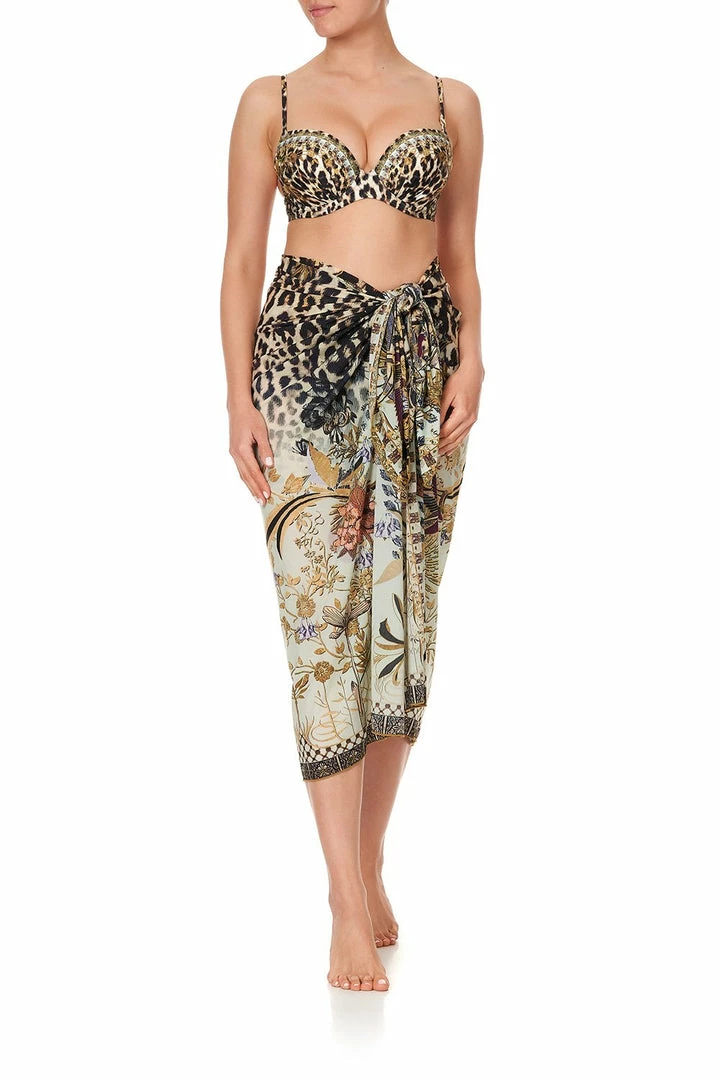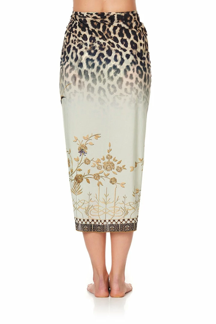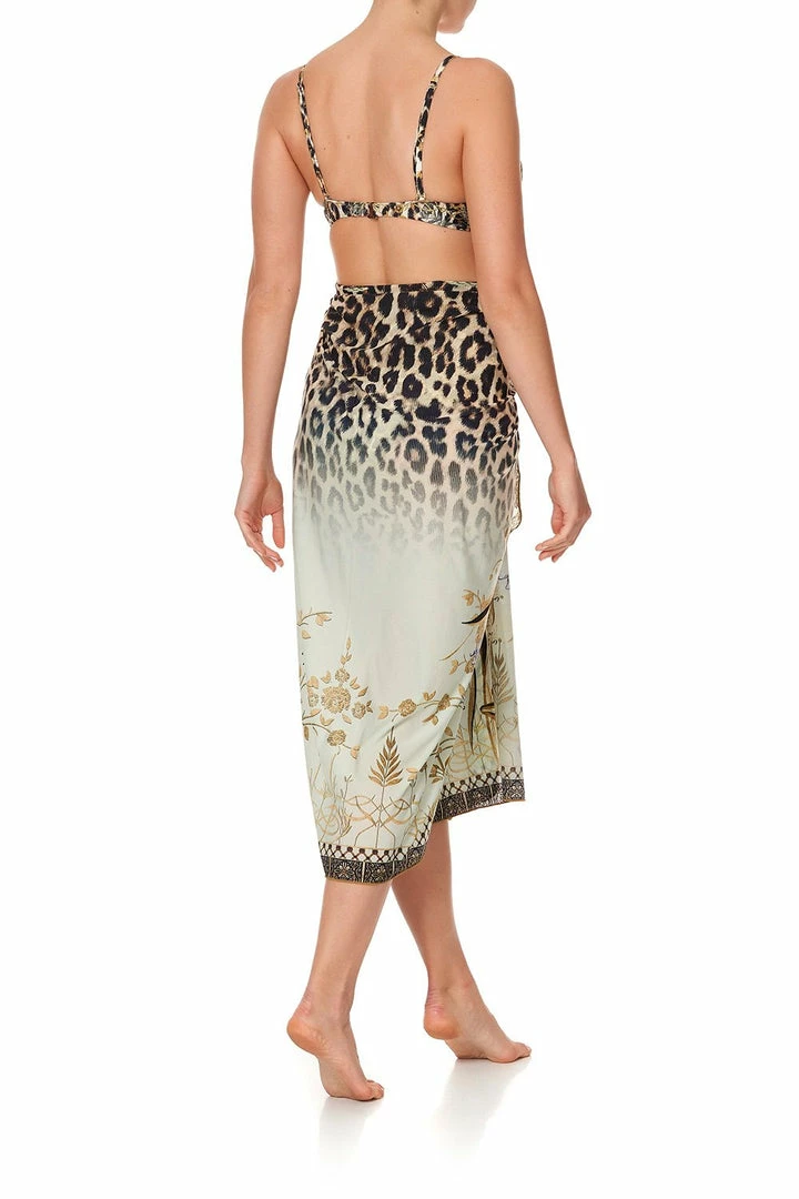 A statement resort wear piece perfectly printed with dreamy gold accents and bold leopard print, the Nomadic Nymph Long Sarong is a striking and luxurious resort style wrap skirt that has endless multiwear abilities. Crafted in a buttery soft Italian Nylon Elastane it is perfect for resort lounging and styling glam around the pool. Style over any of the Nomadic Nymph Swim pieces as a skirt, a midi length dress or to provide coverage from the sun.