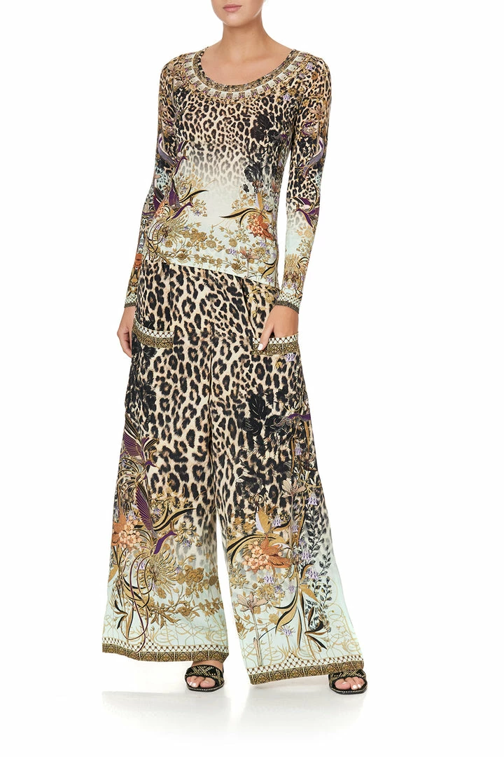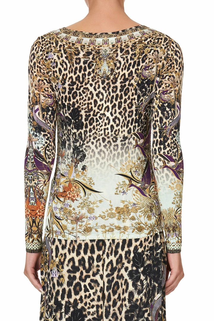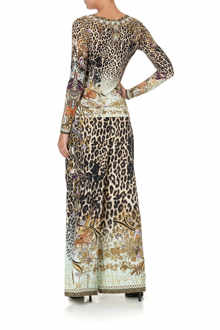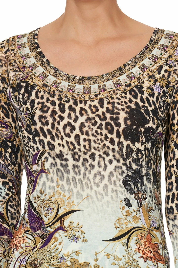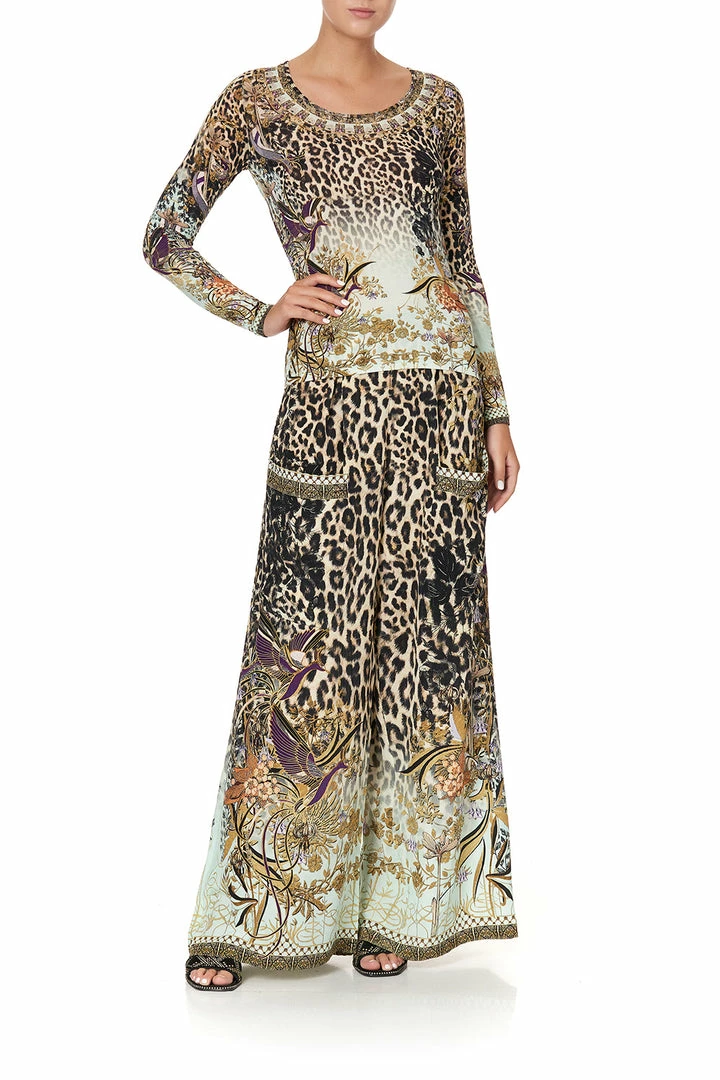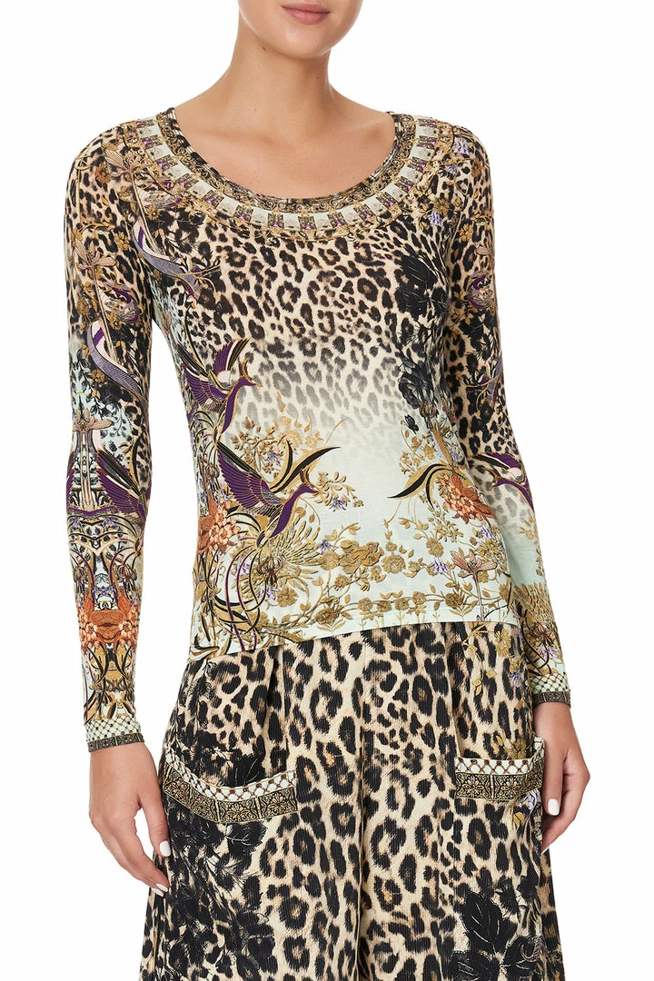 A mystical marvel across a bold statement leopard backdrop, the Nomadic Nymph Long Sleeve Fitted Top is a stunning statement piece perfect to layer within your winter wardrobe. This long sleeve slim fit top has a round neckline, full length sleeves, crafted in buttery soft modal fabric and finished with hand placed CAMILLA crystal embellishments. Perfect to pair under can of your silk CAMILLA blouses or wear alone and pair with the Nomadic Nymph Wide Leg Trouser with front Pockets for a chic ensemble.