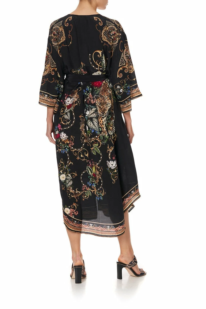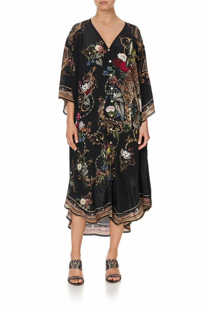 A striking union of 80’s fashion and feminine energy, the Studio 54 Loose Button Through Dress is a chic silk midi dress inspired by Grace Jones and her unapologetic attitude in carving out her own unique style. This flared sleeve midi dress features a flattering v-neckline, a detachable tie, button front closure and finished with hand placed CAMILLA crystals as embellishments. Pair back with your favourite heels for a fabulous night of dancing.