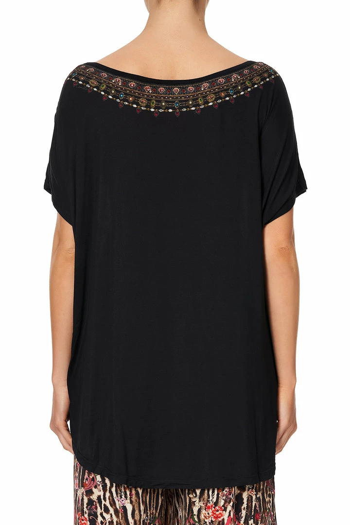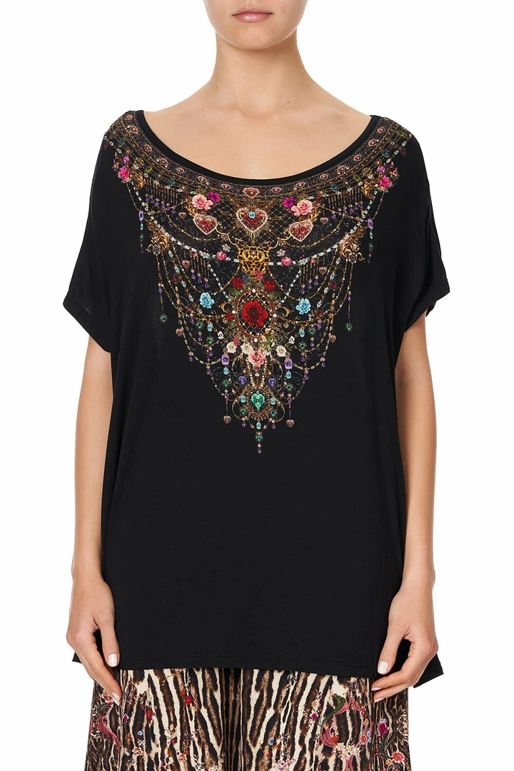 A black statement shirt radiating with a heavenly crystal embellishment neckline, the A Girl Like You Loose Fit Tee is whimsical opulence. This striking scoop neck white t-shirt is crafted in a soft modal cut to a loose yet flattering shape and finished with a bespoke hand-applied crystal neckline. A collectable season-upon-season, pair back tucked into A Girl Like You Harem Pants for the perfect relaxed look. With a fit that’s designed to flatter the feminine form, this piece has been lovingly crafted in extended sizing so now there’s even more to adore.