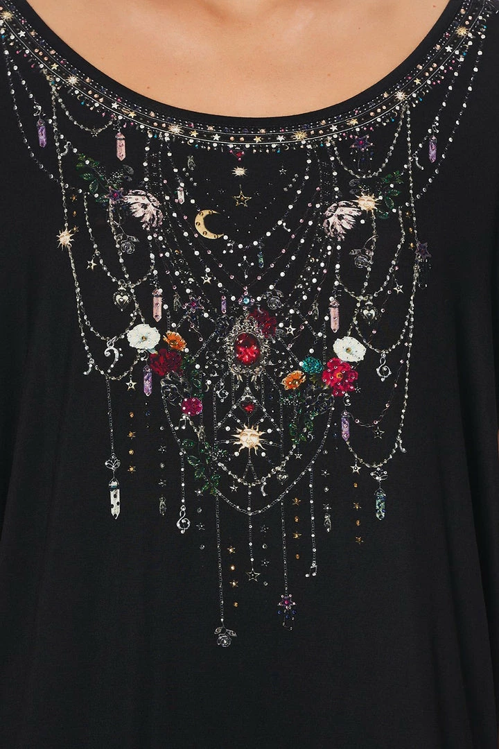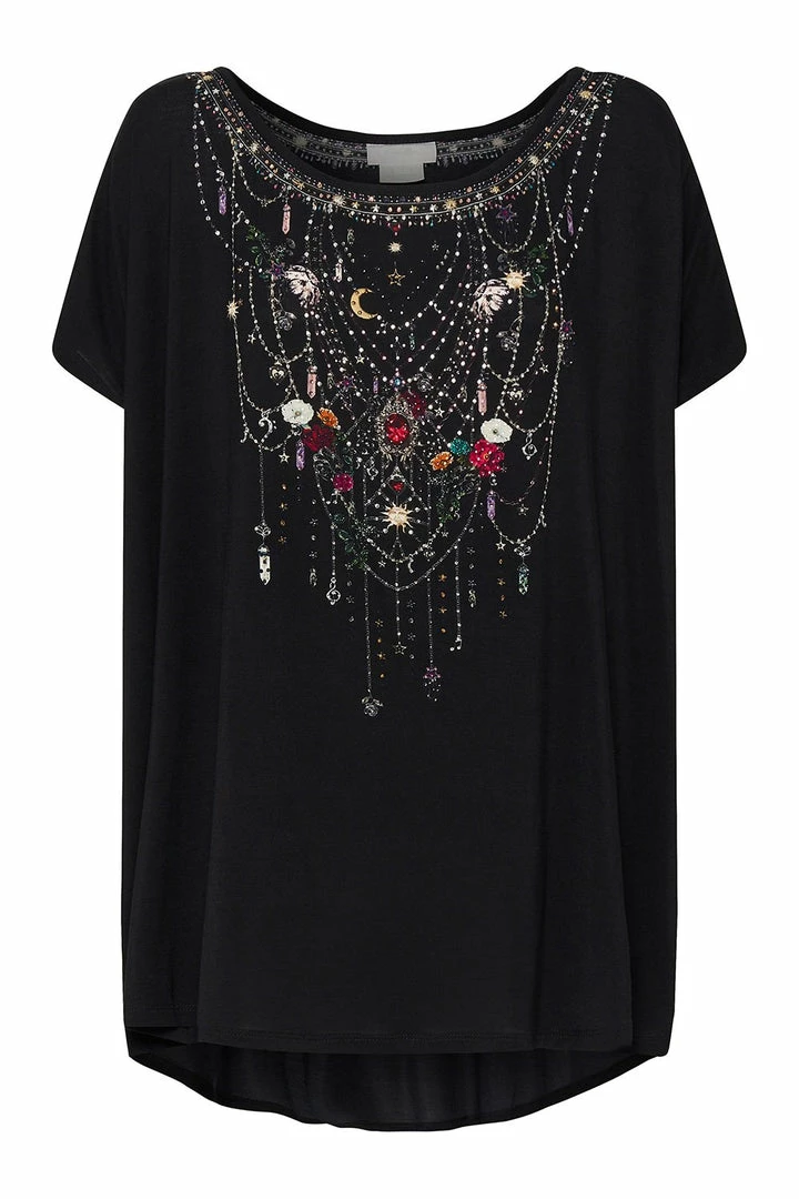 A wardrobe staple elevated – the To The Gypsy Loose Fit Tee features vibrant florals and CAMILLA crystals to elevate your casual wear. A scooped neck and relaxed fit make it super comfortable and looks great teamed with jeans or a flowing skirt for summer.