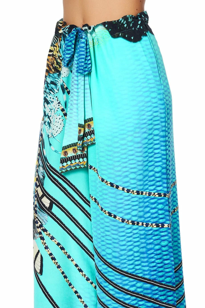 Generous wide leg pant, the Marine Queen Lounge Trouser With Tie Waist proudly expose a canvas of tropical crystalline waters filled with the living treasures that call the iconic coast line of the Great Barrier Reef home.