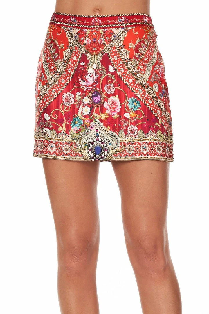A summer statement piece with artisan spirit, the Cameos Can Can Mini Skirt marries red florals with bold heart motifs for a look inspired by Parisian adventure. Featuring back darts, invisible zip closure and a high waistband this enigmatic pure silk piece is finished with hand-placed CAMILLA crystals. Wear with the Cameos Can Can T-Back Shoestring Top for an elevated resort feel, or with a crisp white shirt for a chic luncheon look.