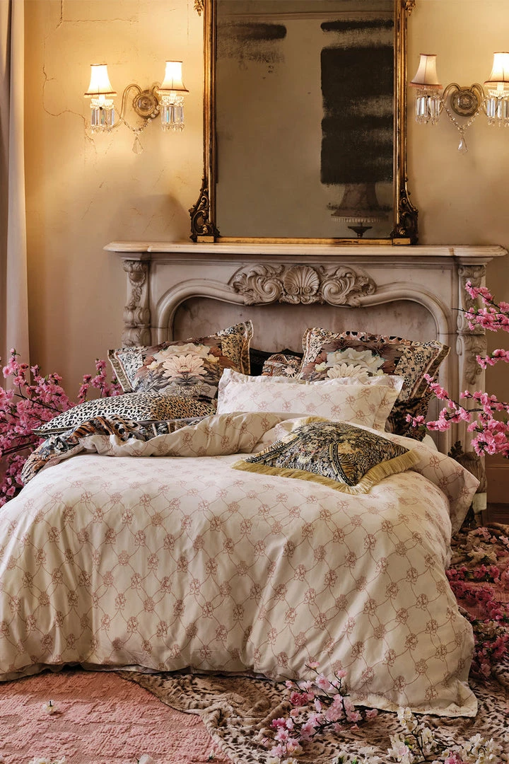 Inspired by snow-capped mountains and blooming cherry blossoms, the Moto Maiko Quilt Cover Set is a blend of soft leopard print, blooming blush botanicals and shades of bronze. Crafted from cotton, this 500 thread cotton sateen quilt cover features a luxury CAMILLA print, a self-tailored finish and a charming reversible design.