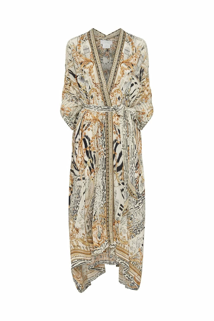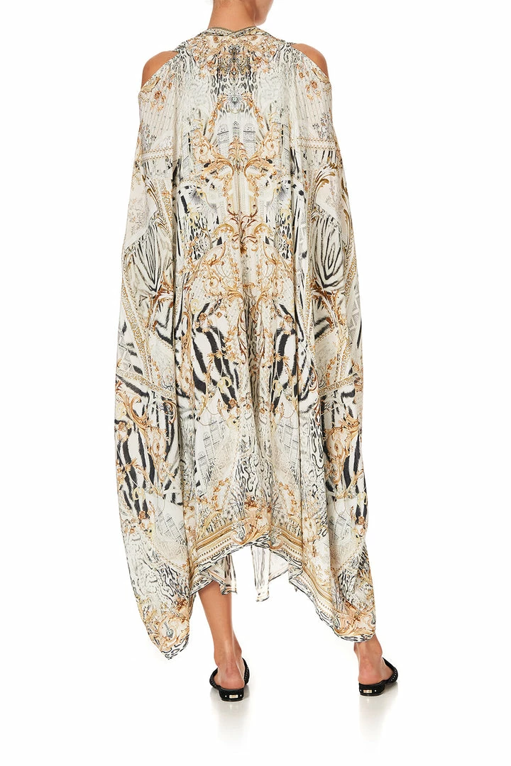 Forget your inhibitions with the Gates of Glory Multiwear Draped Layer, composed in fluid silk with gilded latticework decorating a scene of monochrome animal print, inspired by the historic interiors of Biba. With long sleeves that drape in a generous fit, and a high-low hem hangs like gossamer wings, delicate and beautiful, this is the scene-stealer you’ve been dreaming about. With multiple styling options for versatile usage, we love to layers ours with this edit’s harem pants for a look that exudes casual-chic.