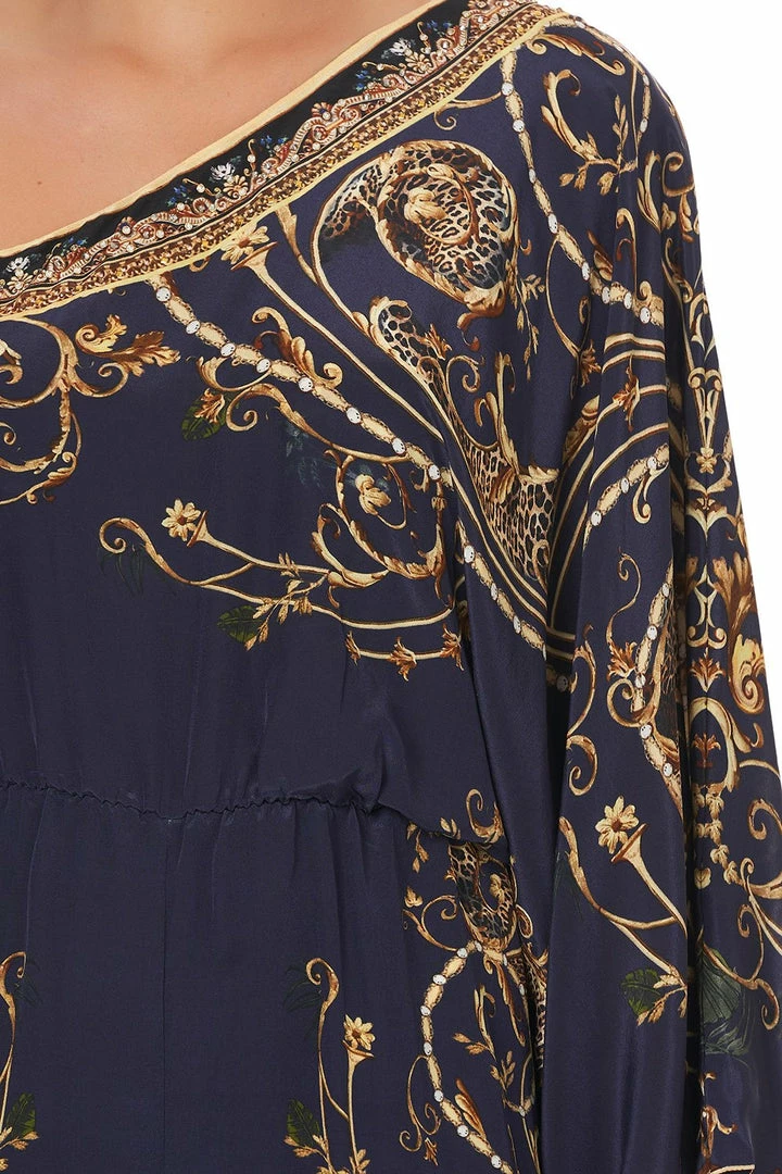 A statement jumpsuit for lovers of retro, the Seven Day Weekend One Shoulder Flared Jumpsuit billows with chic resort beauty. Made with love from a bespoke printed CAMILLA print that tells a tale of Grace Jones celebrating her heavenly debauchery, this striking floor length jumpsuit features a dreamy one shoulder ¾ length sleeve, hip flared pants and a comfortable elasticated waist for free movement and all-night grooving. Finished with hand applied CAMILLA crystals for an added layer of luxe, pair this stunner with statement earrings.
