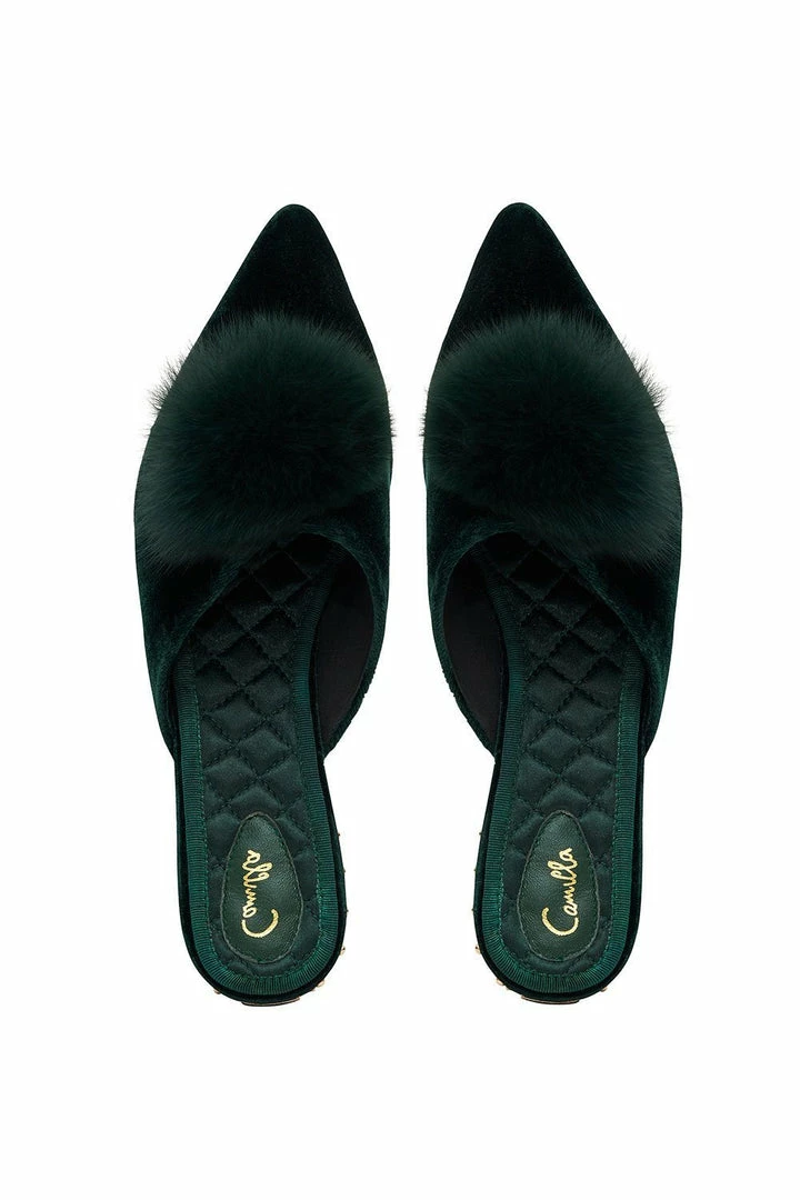 – Luxe Emerald Pom Pom Slipper