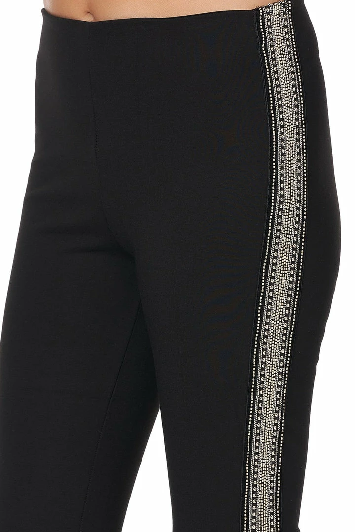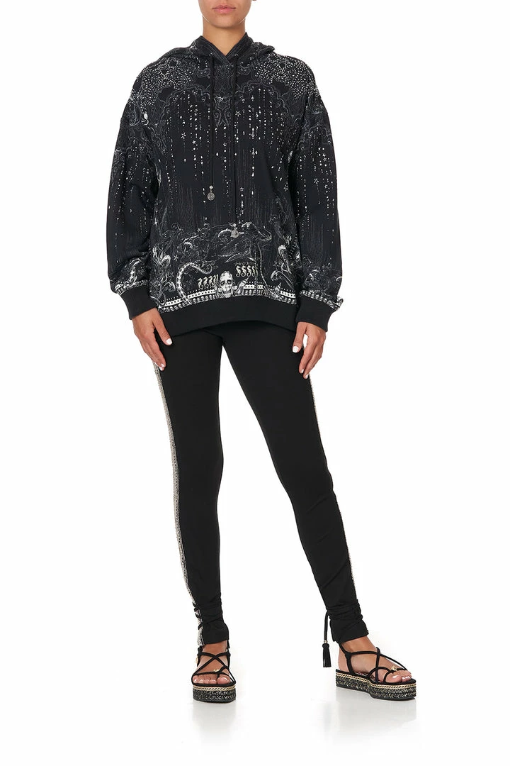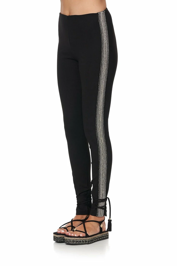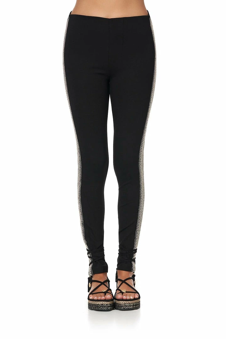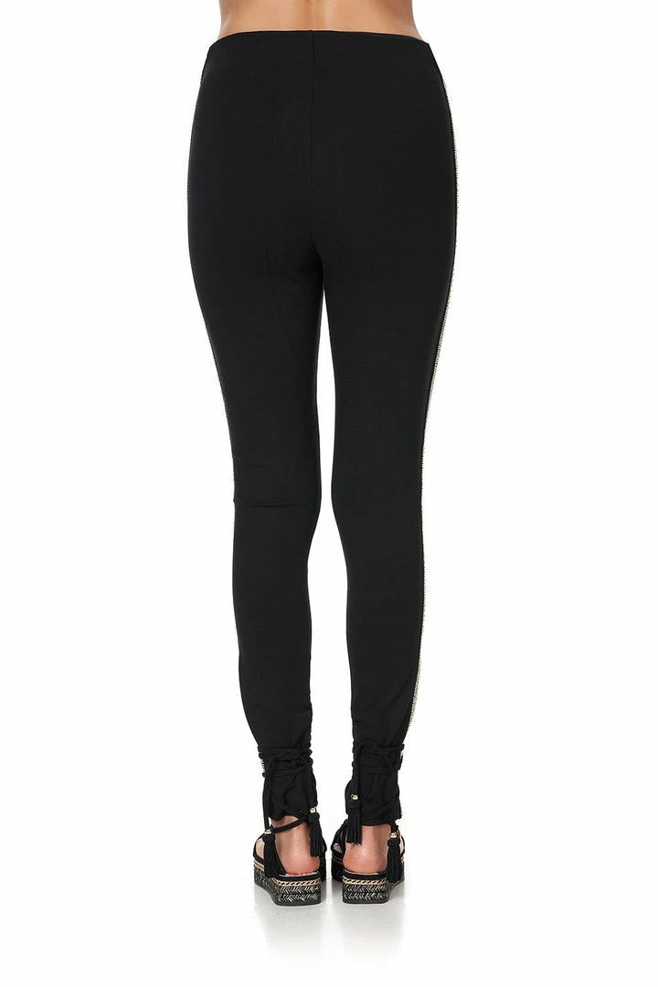 A rumour of deep-sea treasures inspires the subtle detailing on the Midnight Pearl Ponte Pant With Side Panel. These black CAMILLA leggings are studded with ornate detailing down the side whilst kept elegantly minimalist at the front and back. A zip opening the at the cuff allows for a slim fit. A coordinating piece for any style in the Midnight Pearl collection, the fresh cut is ideal for dusk till dawn revelries.