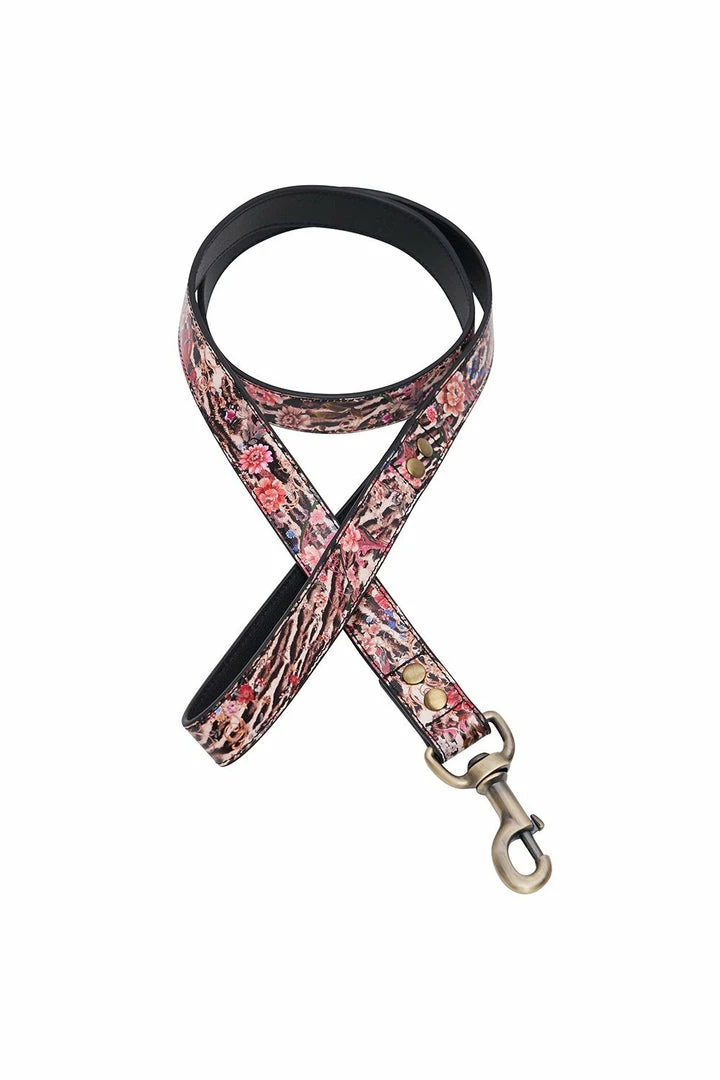 Summer adventures with your best friend await with the Liv A Little Printed Dog Leash. A colourful leather dog lead decorated with fierce leopard print and feminine blooms; this slimline design is finished with a metal dog clip making it easy to attach to the matching Liv A Little Printed Dog Collar.