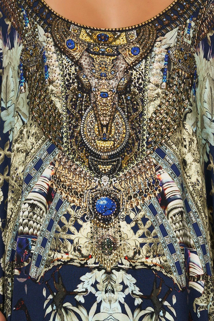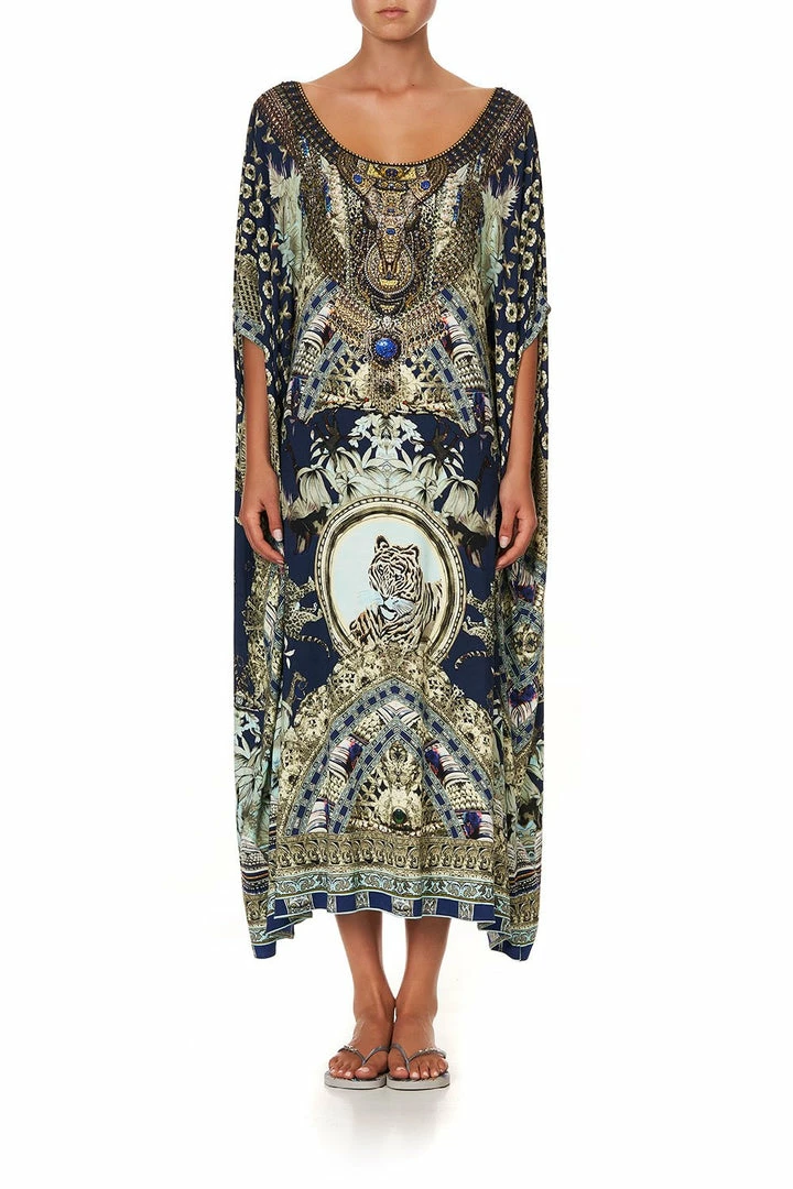 Styled in an iconic CAMILLA silhouette, the A Little Past Twilight Round Neck Kaftan radiates signature luxe with a bold celestial vibe. Delving into our archives, this much-loved print pays homage to our 2017 ‘China’ collection. The striking neckline has all the hallmarks of a CAMILLA classic and is embellished with hand-placed crystals whilst the super soft jersey gives a comfortable, versatile and fabulous fit. Style barefoot and with a smile as you lounge decadently at home.