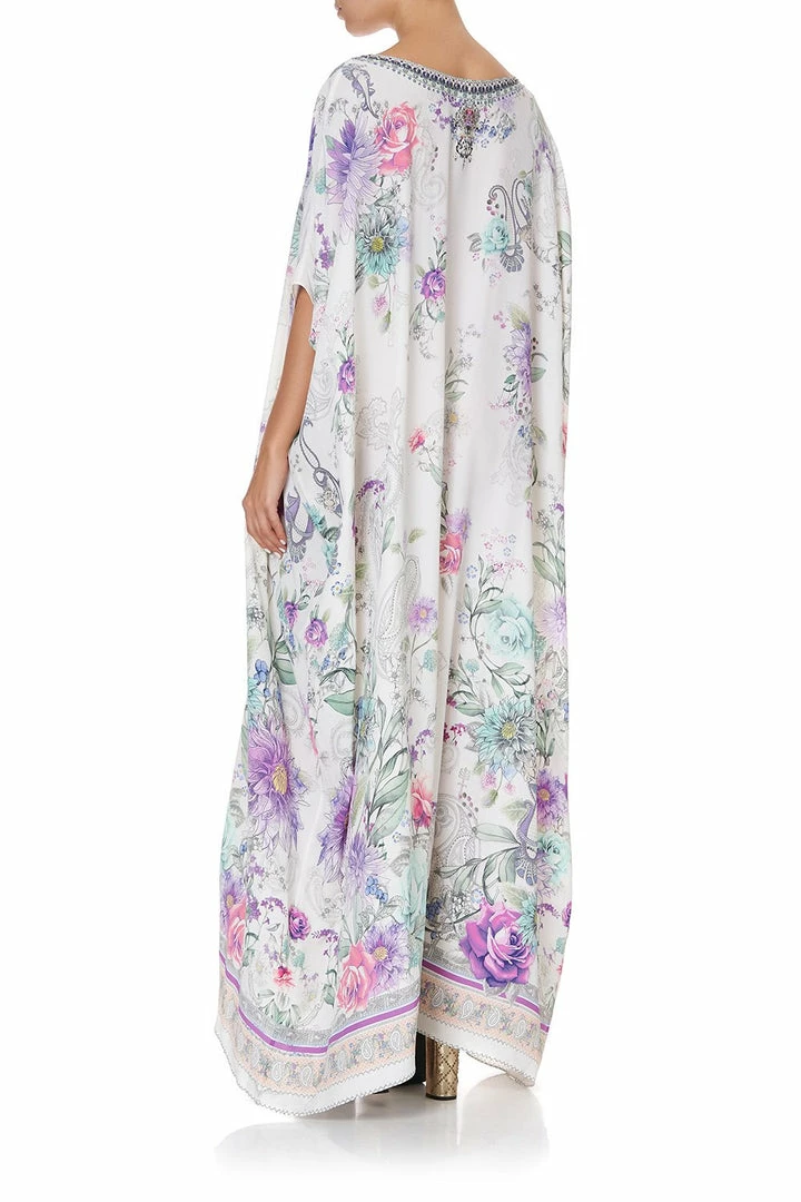 A celebrated CAMILLA silhouette reimagined season-upon-season, the Forever Far Round Neck Kaftan is majestically immersed with hand-painted florals at full bloom. Crafted in a striking floral and paisley print, this floor length and versatile free-flowing dress allows it to be styled a myriad of ways time and time again. Wear free flowing, tie to a mini dress for a night of dancing, or style off the shoulder for a chic evening affair. To discover more ways to style, visit the CAMILLA style guide.