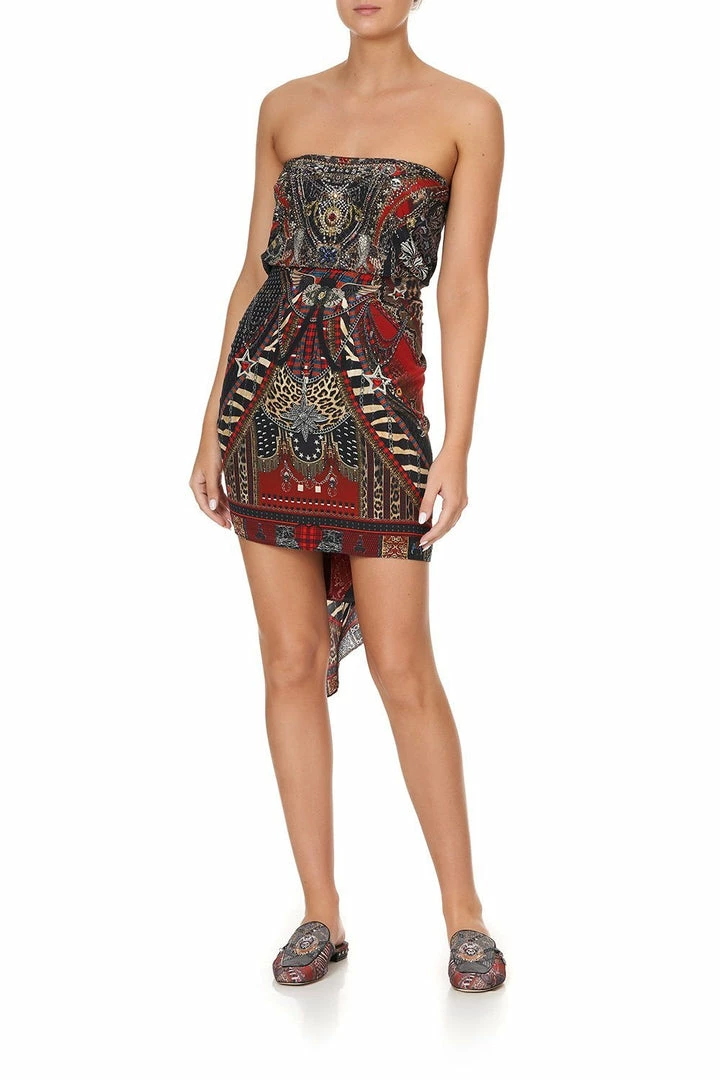 Waving the flag for anarchy, the London Calling Round Neck Kaftan is a silk salute to rebels and revolutionaries. Inspired by a punk rock rebellion, this resort style pays homage to an anti-establishment crew of renegades, embodied by the thrilling clash of plaid and print. Safety pins, skulls and chains honour our counter-culture muses and the signature CAMILLA crystal neckline has a delightfully punk makeover. To style the relaxed fit and ¾ length sleeves we urge you to embrace the sartorial chaos at the Mad Manor and ditch your usual sandals for boots and a leather jacket.